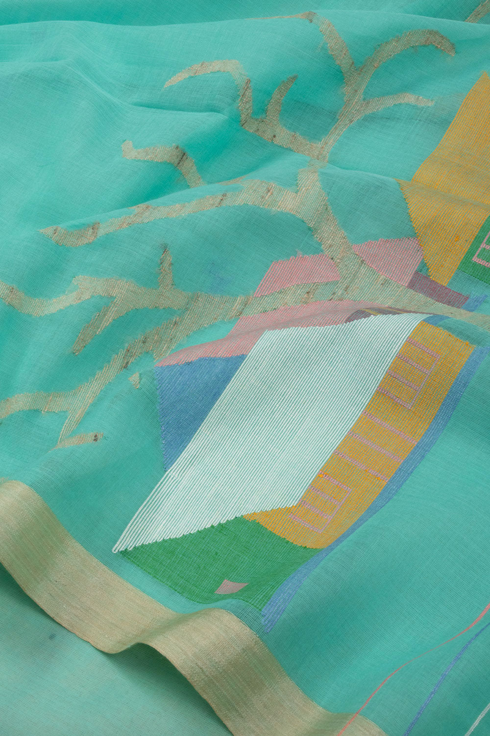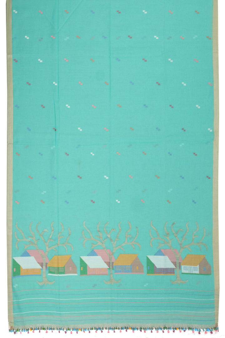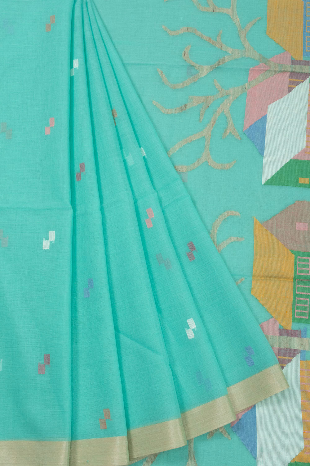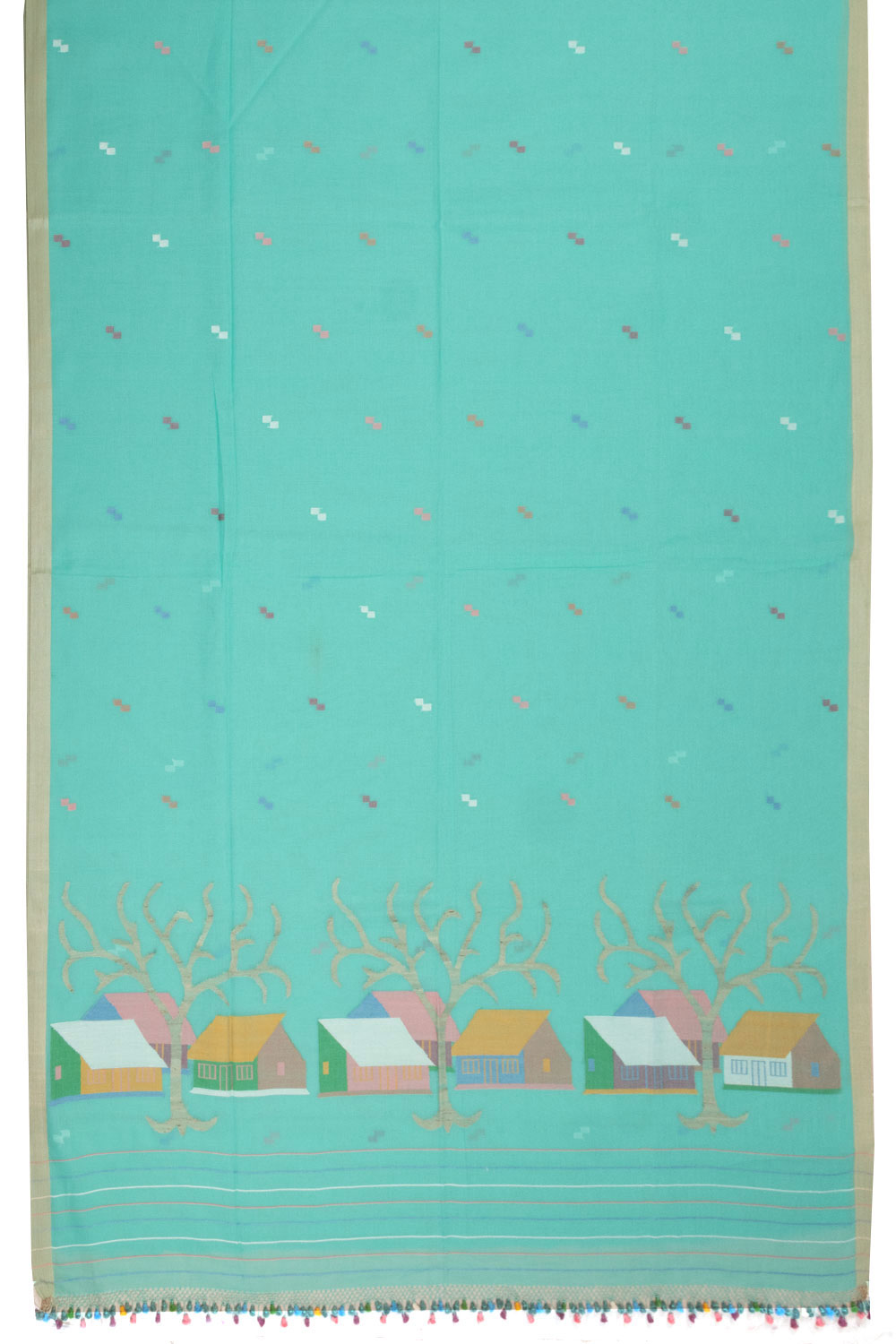 Blue Handspun And Handwoven Jamdani Cotton Saree 10072207
