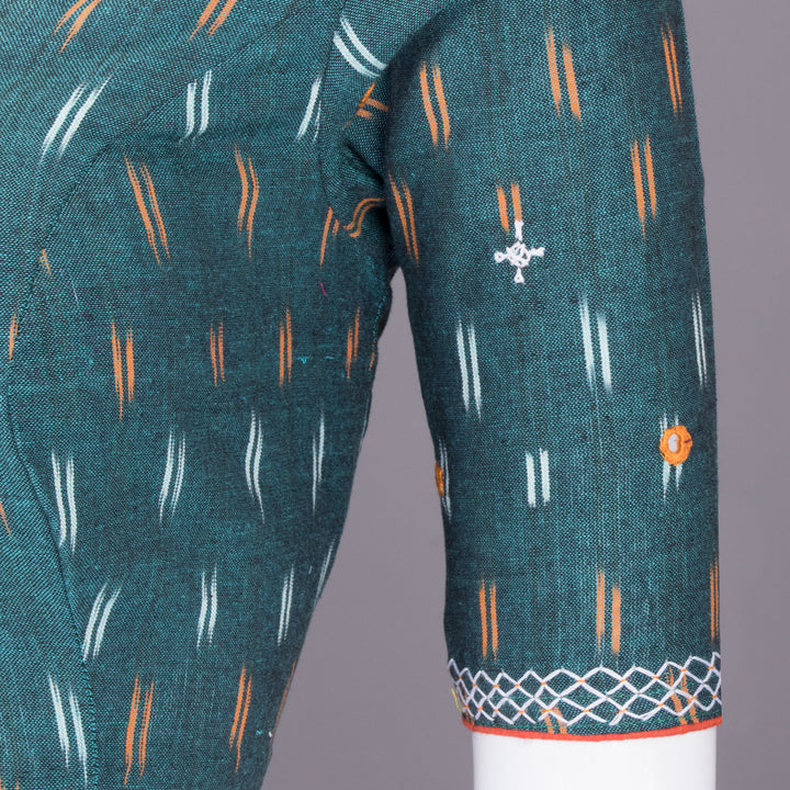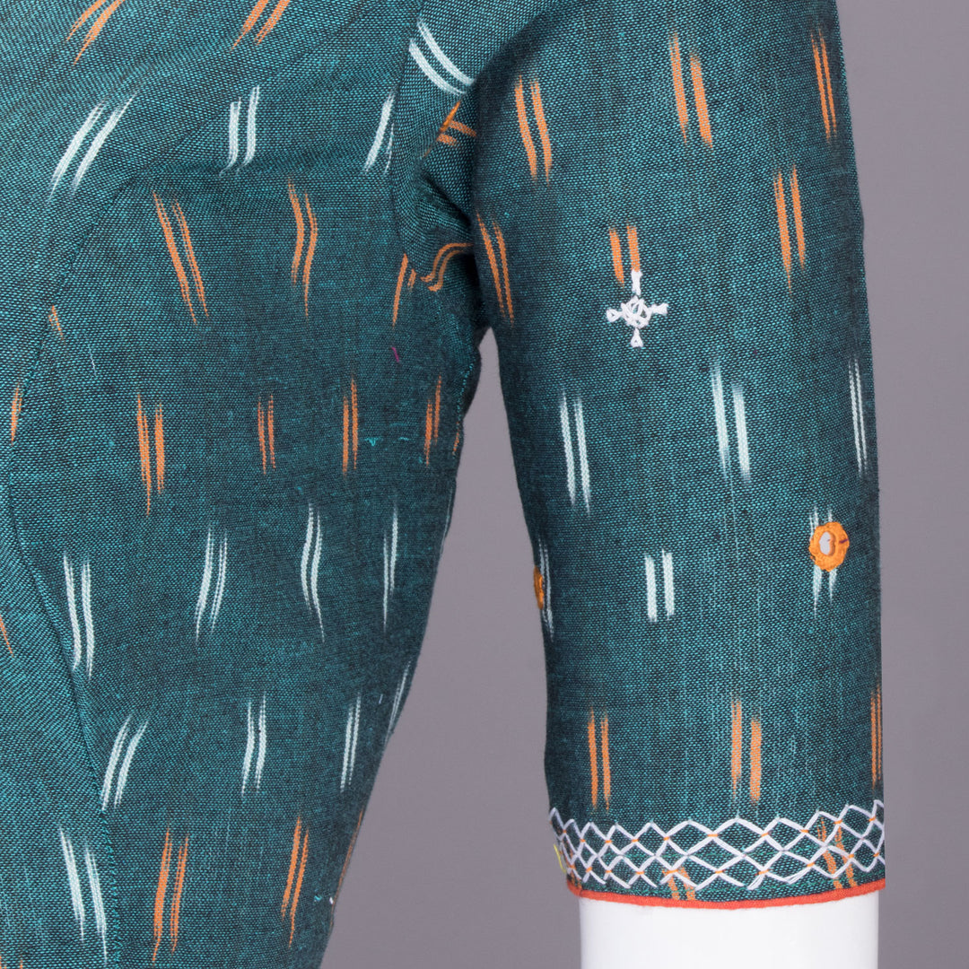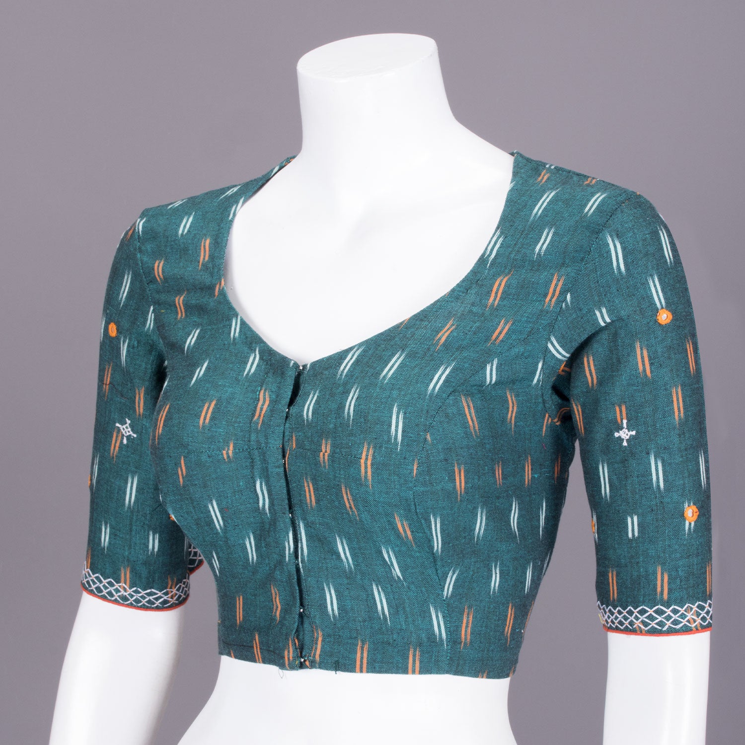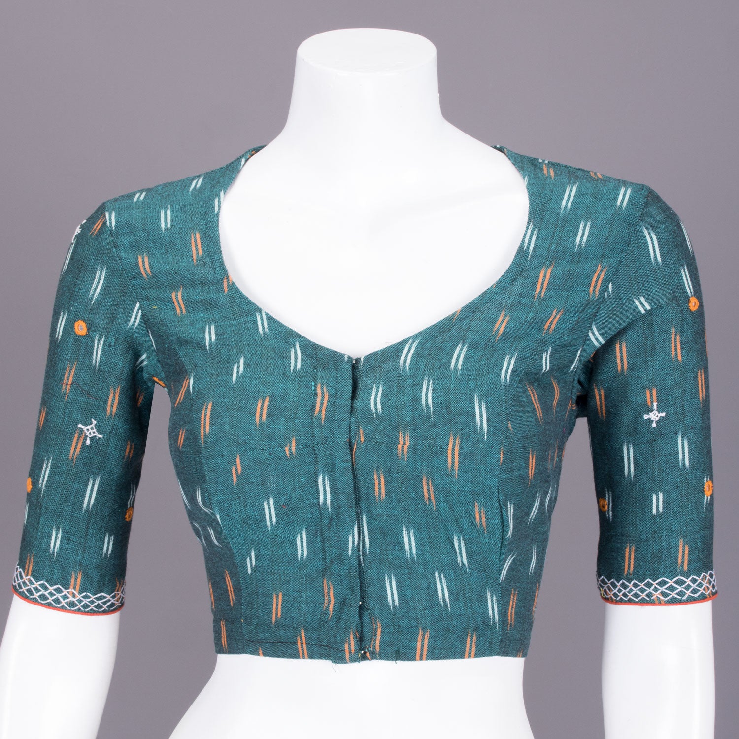Blue Ikat Mirror Work Embroidered Cotton Blouse 10071408