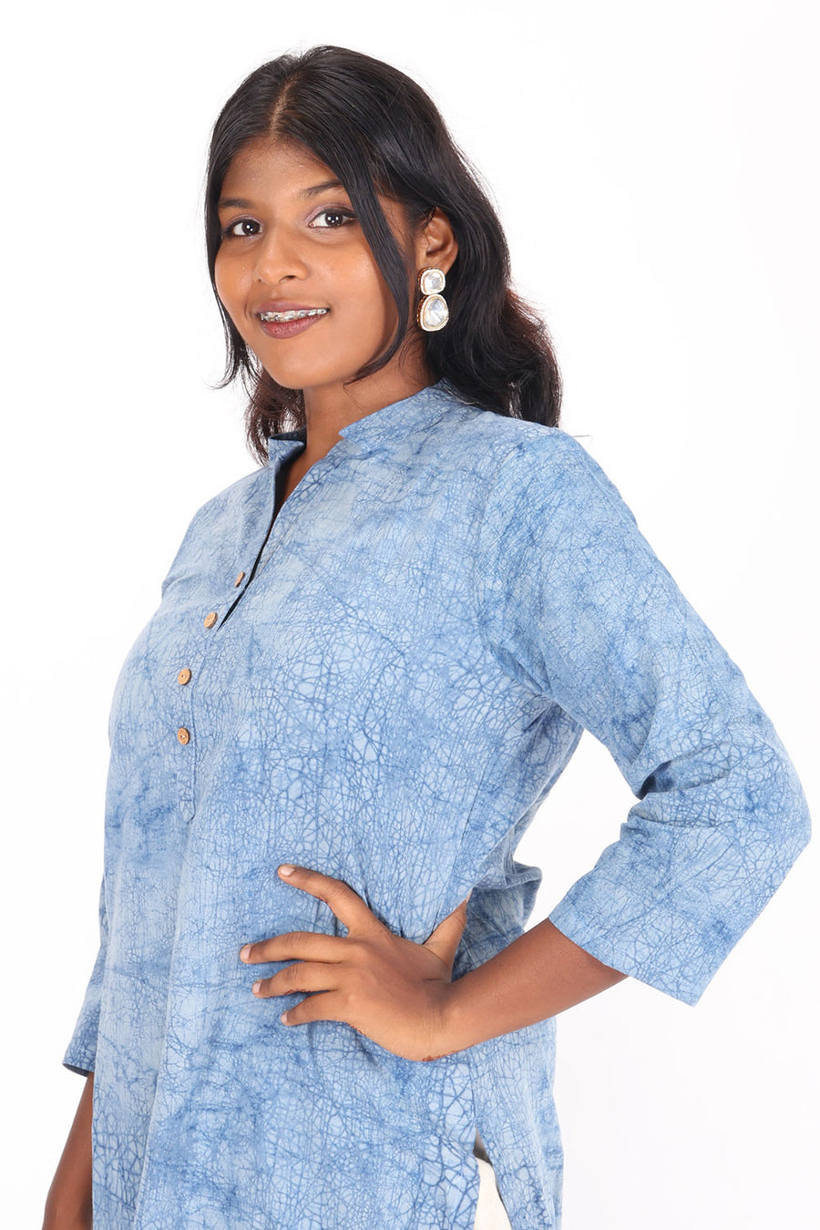 Blue Indigo Hand block Print Cotton Kurta 10072035
