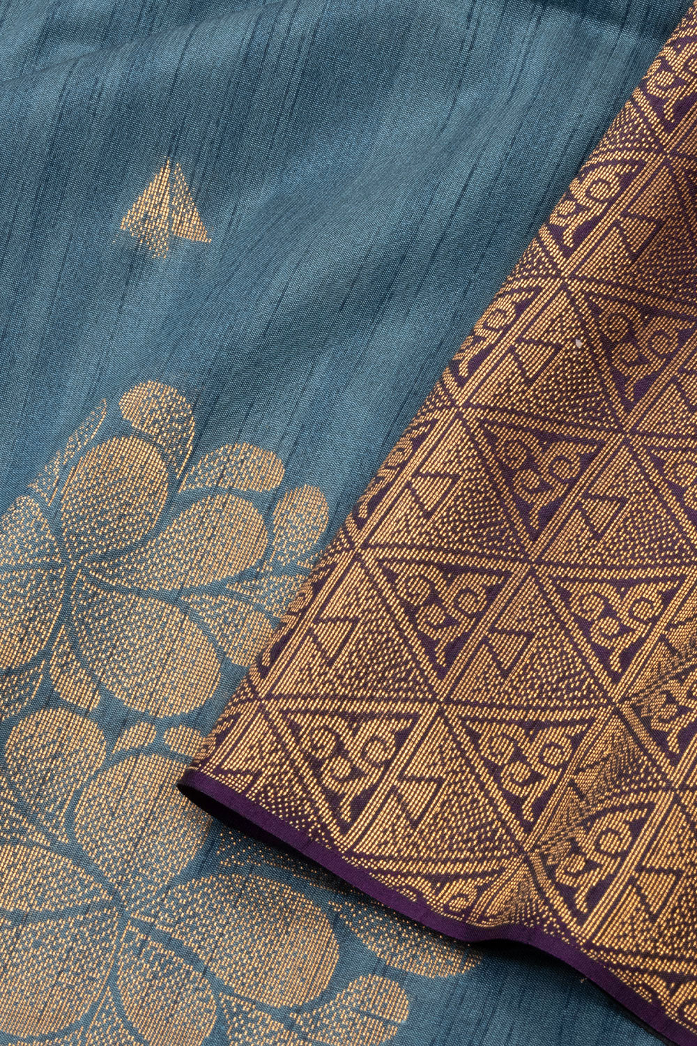 Blue Jute Weave Kanjivaram Vegan Silk Saree 10073848