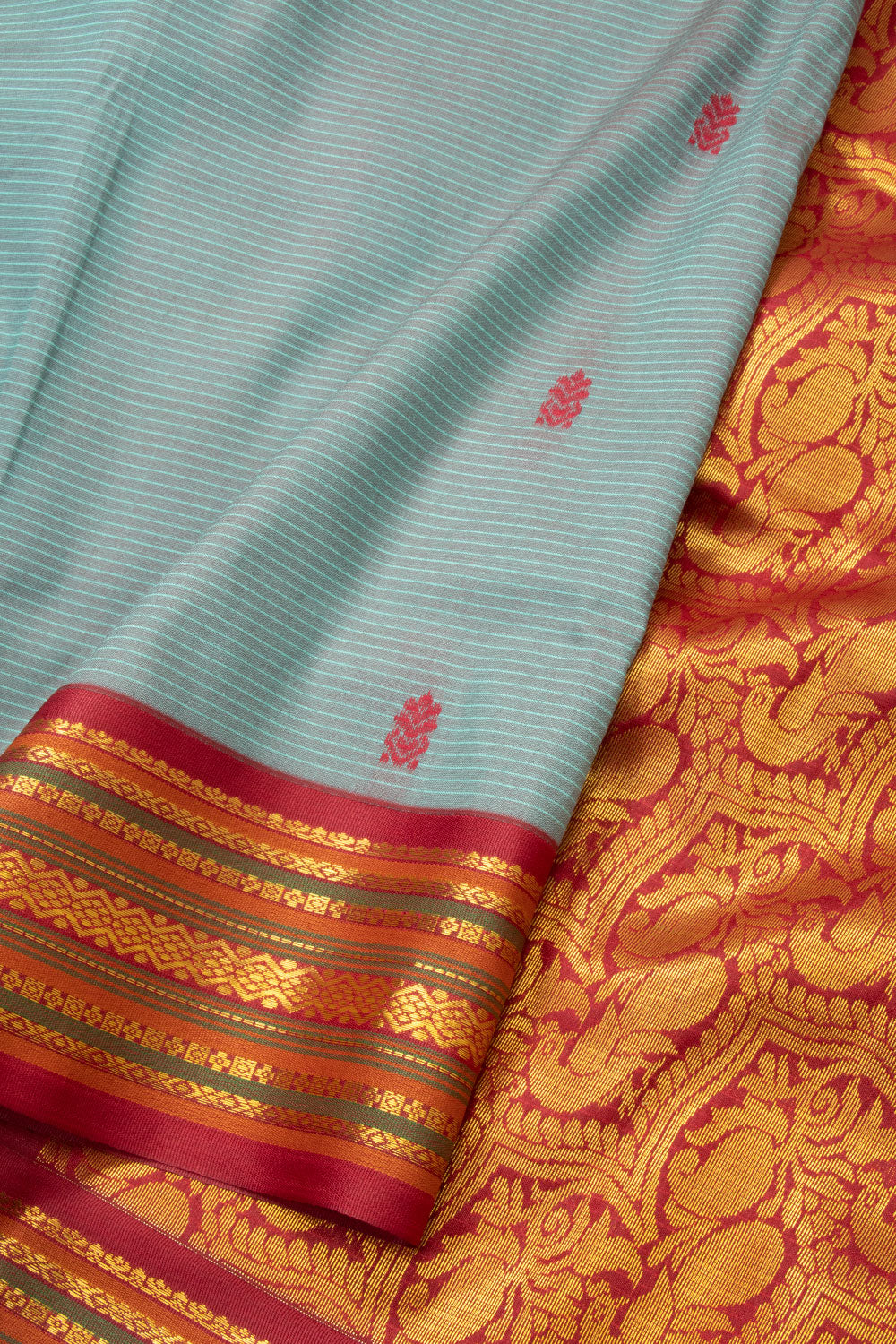 Blue Kanjivaram 9 yard Vegan Silk Saree 10073901