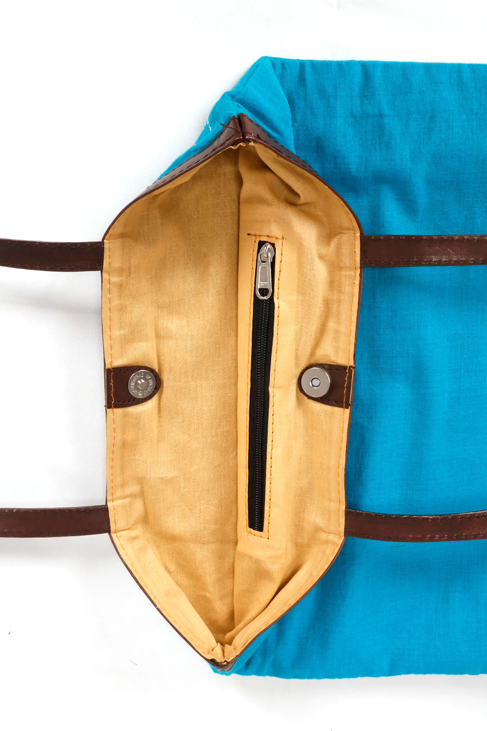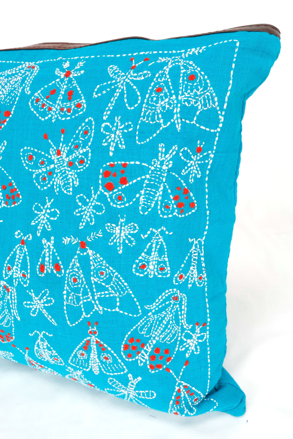 This elegant blue Kantha Embroidery Hand bag is the perfect accessory to add to your collection. With beautiful butterfly designs, this bag is sure to stand out from the crowd. Enjoy the luxury of this designer bag, crafted with the utmost care and attention to detail.