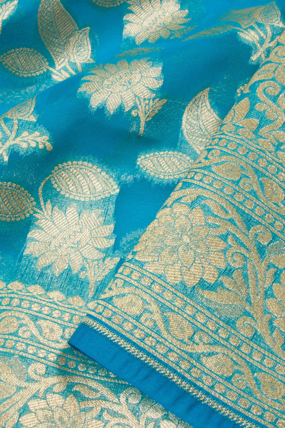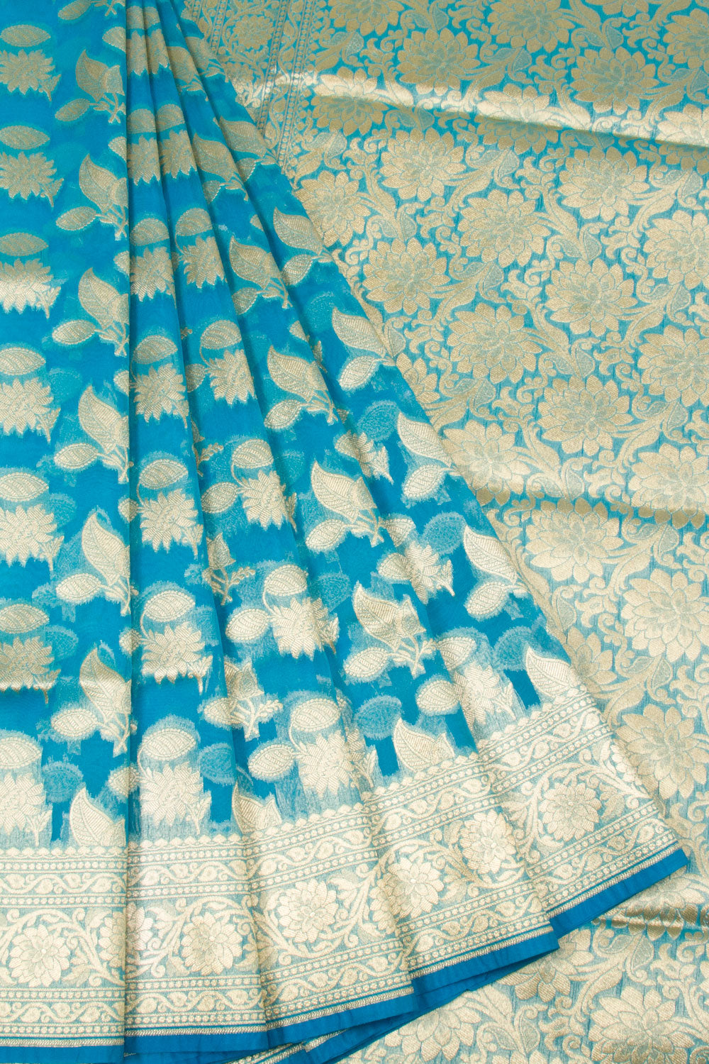 Bondi Blue Handloom Banarasi Kora Silk Saree 10063189