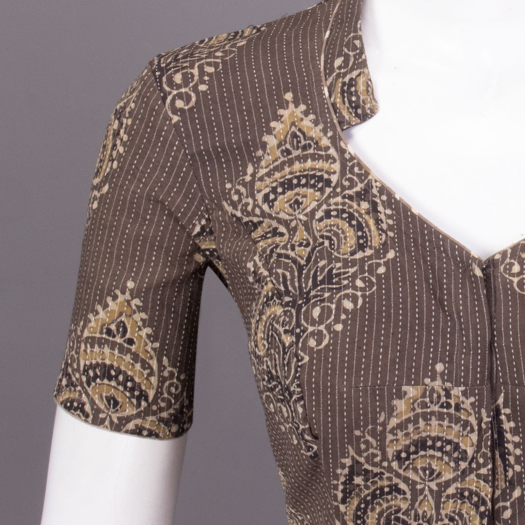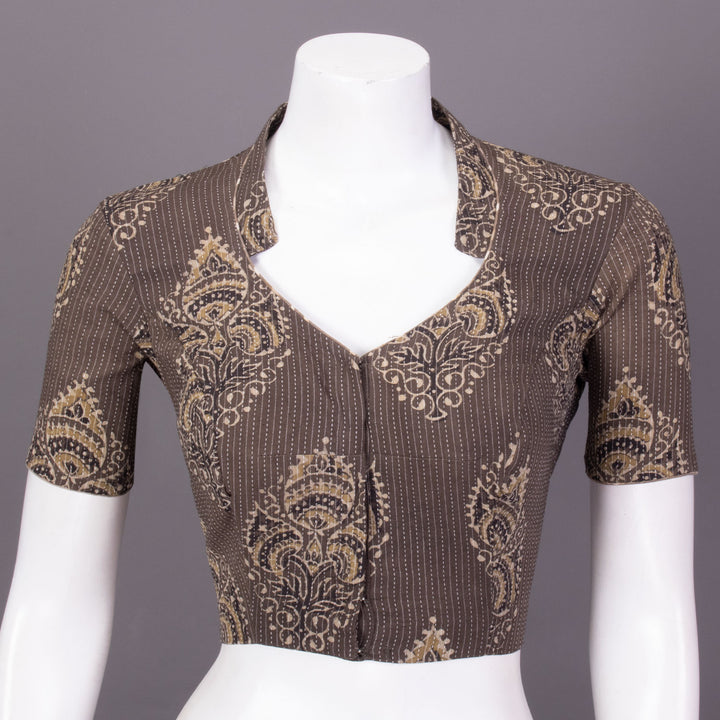 Brown Ajrakh Printed Cotton Blouse 10073383