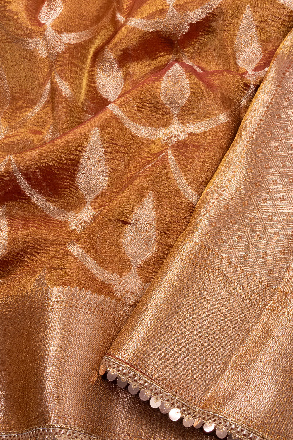 Brown Banarasi Tissue Organza Saree With Sequin Border 10072288