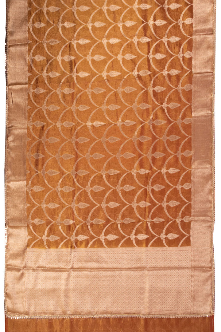 This vibrant Brown Banarasi Saree is crafted with Tissue Organza fabric featuring a delicate Sequin Border and intricate jaal design on the body. Experience the luxurious feel of tissue and elegance of Banarasi weaving. Perfect for weddings and special occasions, this saree is a must-have in your wardrobe!