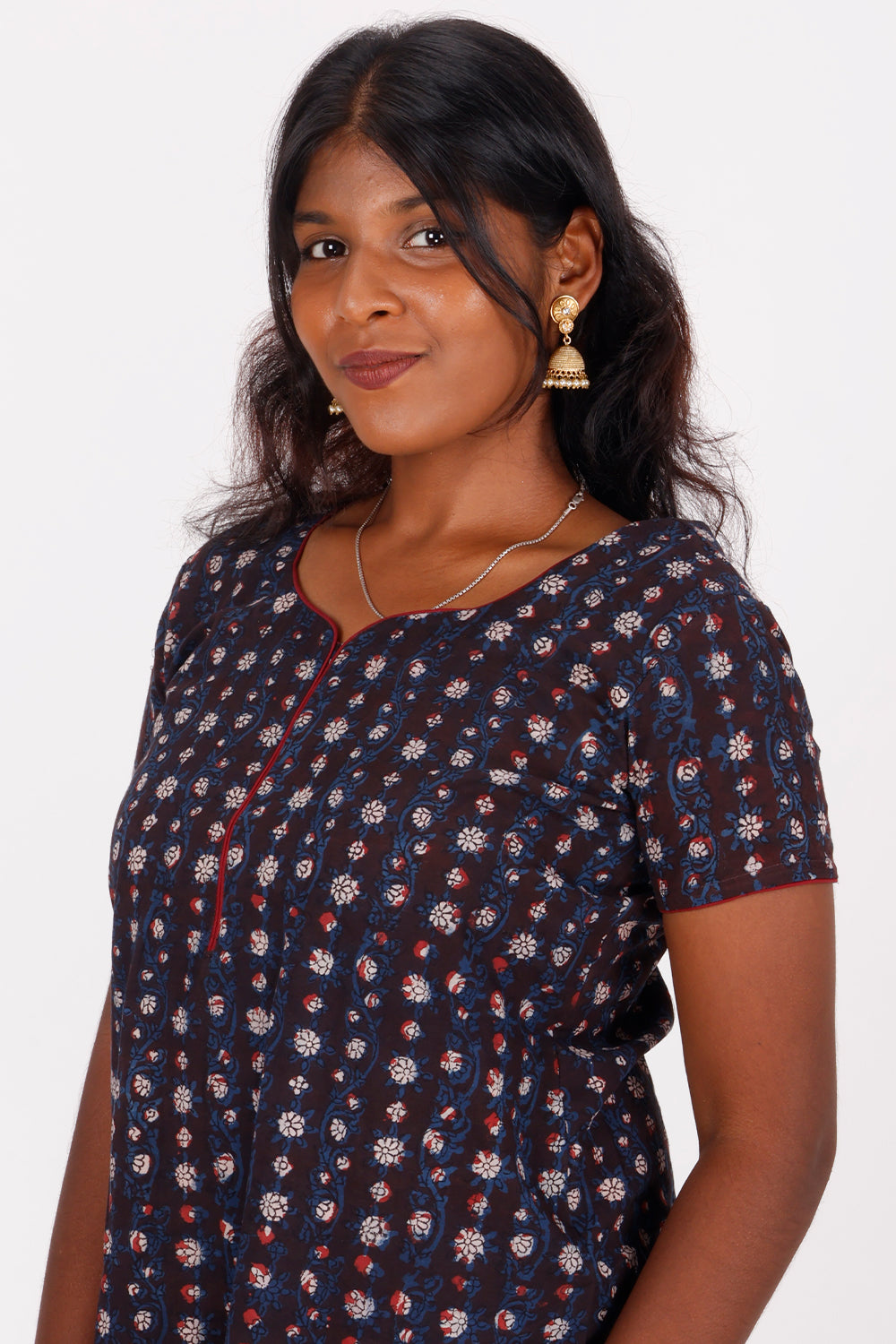Brown Coffee Jahota Hand Block Cotton Kurti 10072358
