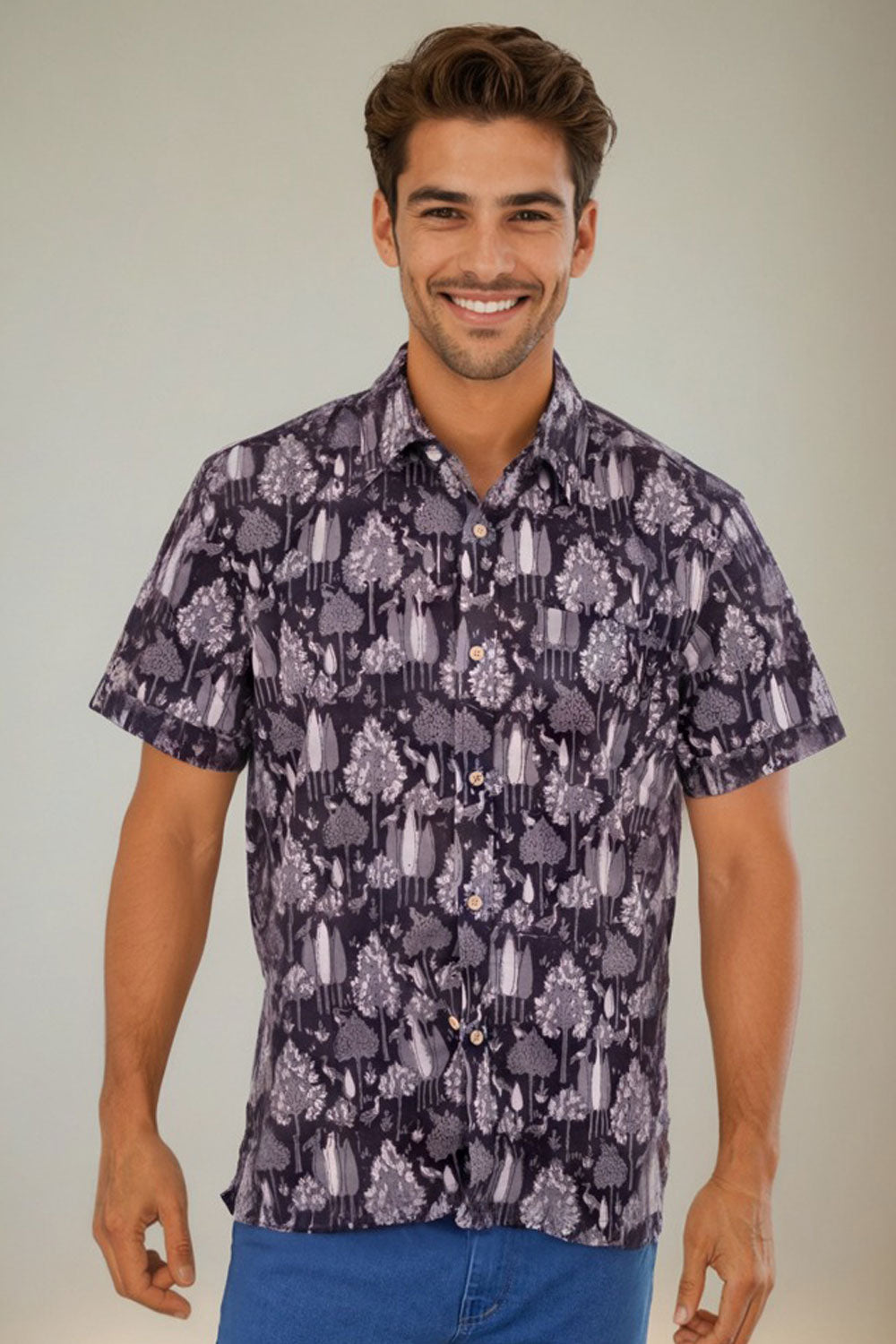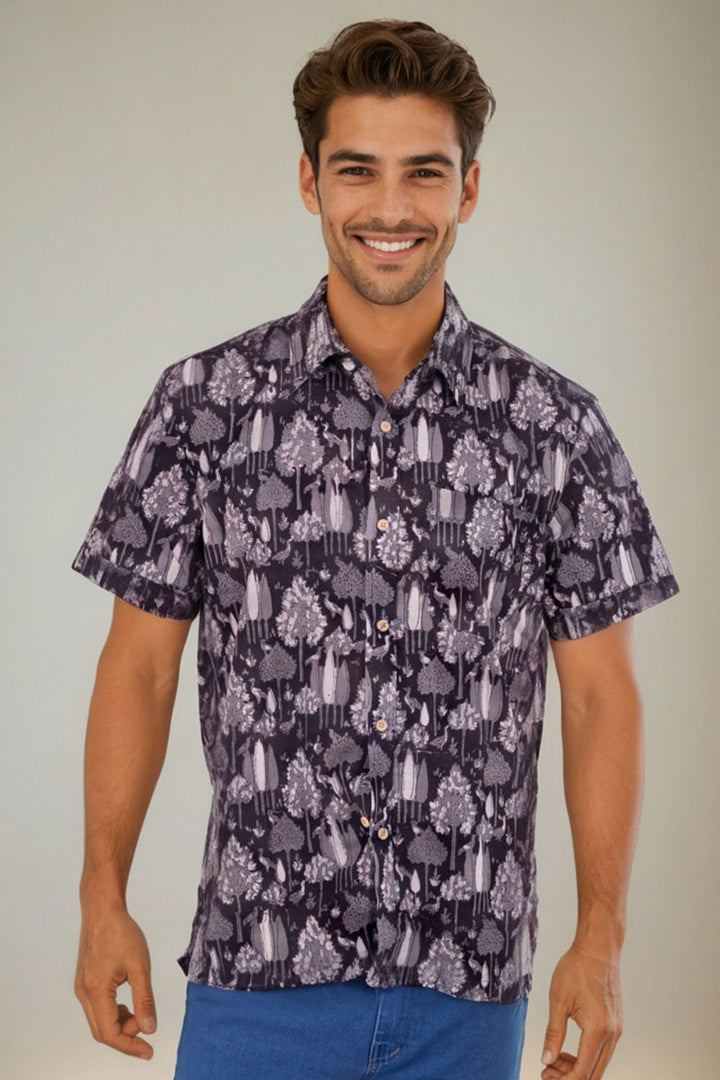 Brown Half Sleeve Jahota Printed Cotton Mens Shirt 10074412