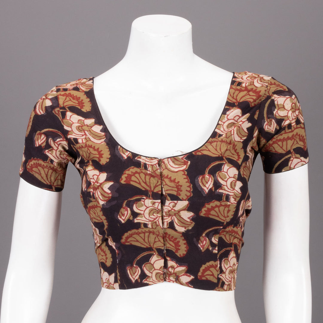 Brown Hand Block Jahota Printed Cotton Blouse 10074486