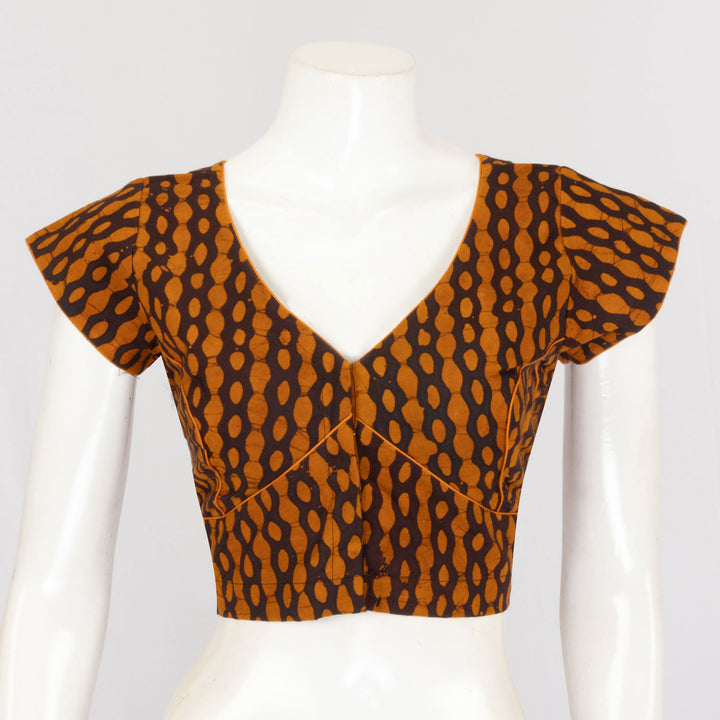 Brown Hand Block Printed Cotton Blouse with Cap Sleeve Its unique design and high-quality construction make it the perfect choice for everyday wear.
