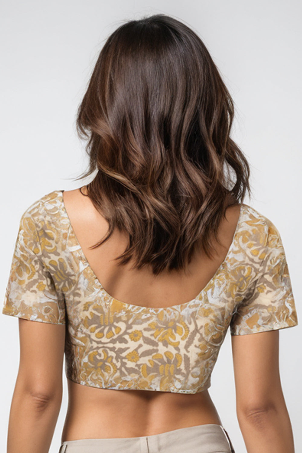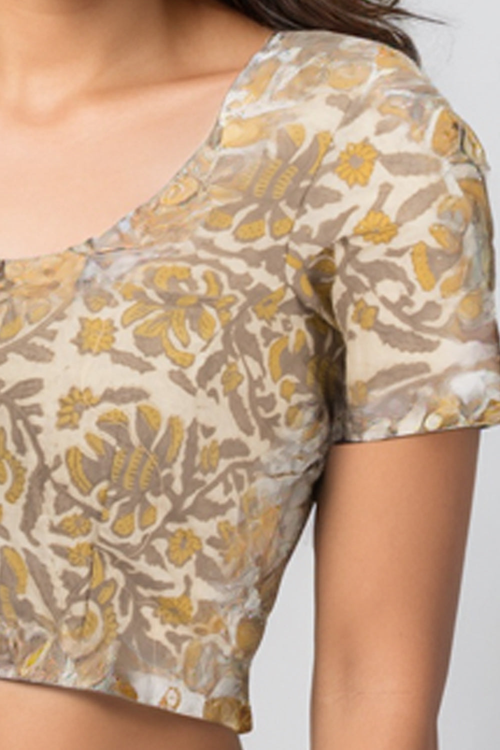 Brown Hand Block Vanaspathi Printed Cotton Blouse 10074475
