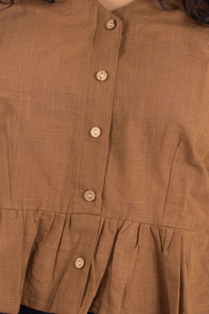 Brown Handcrafted Slub Cotton Crop Top 10073973