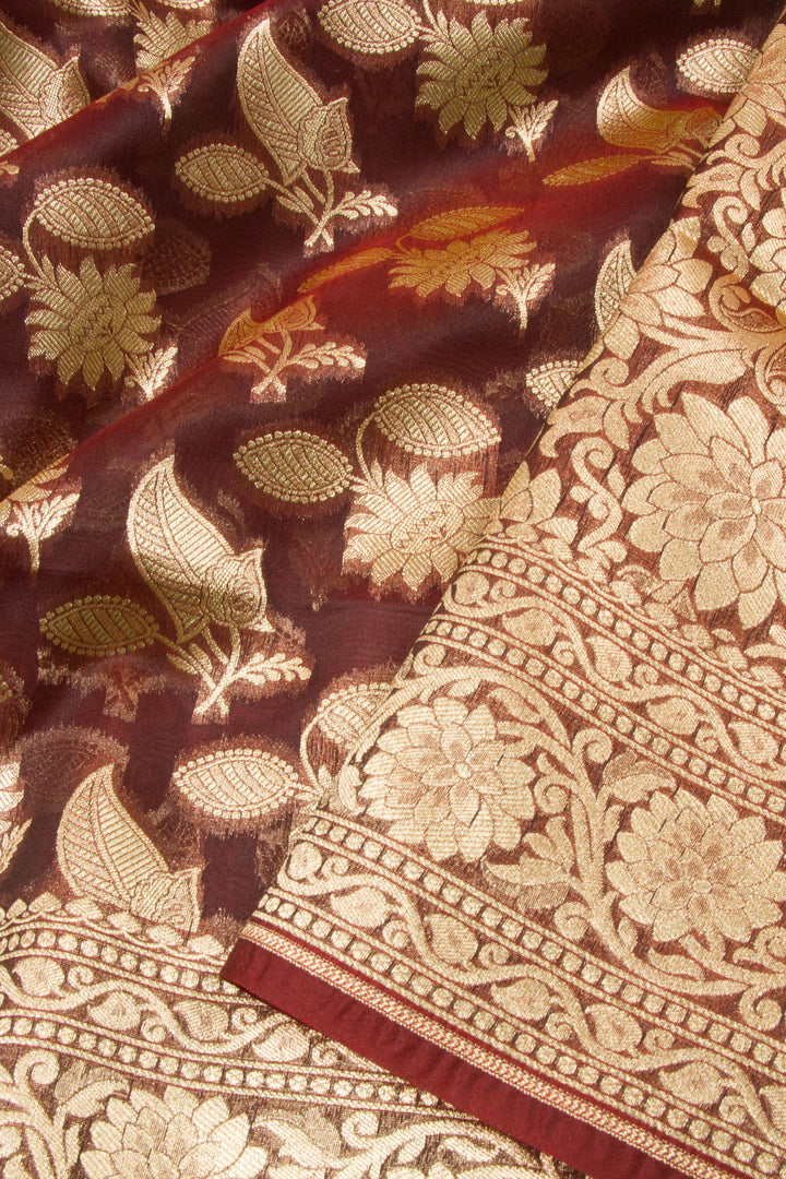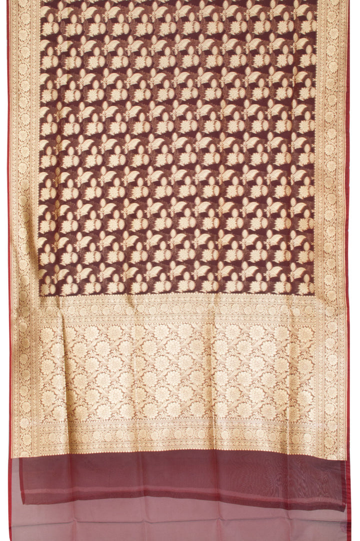 Cocoa Brown Handloom Banarasi Kora Silk Saree 10063188