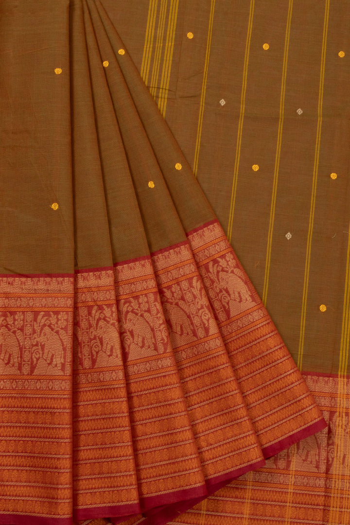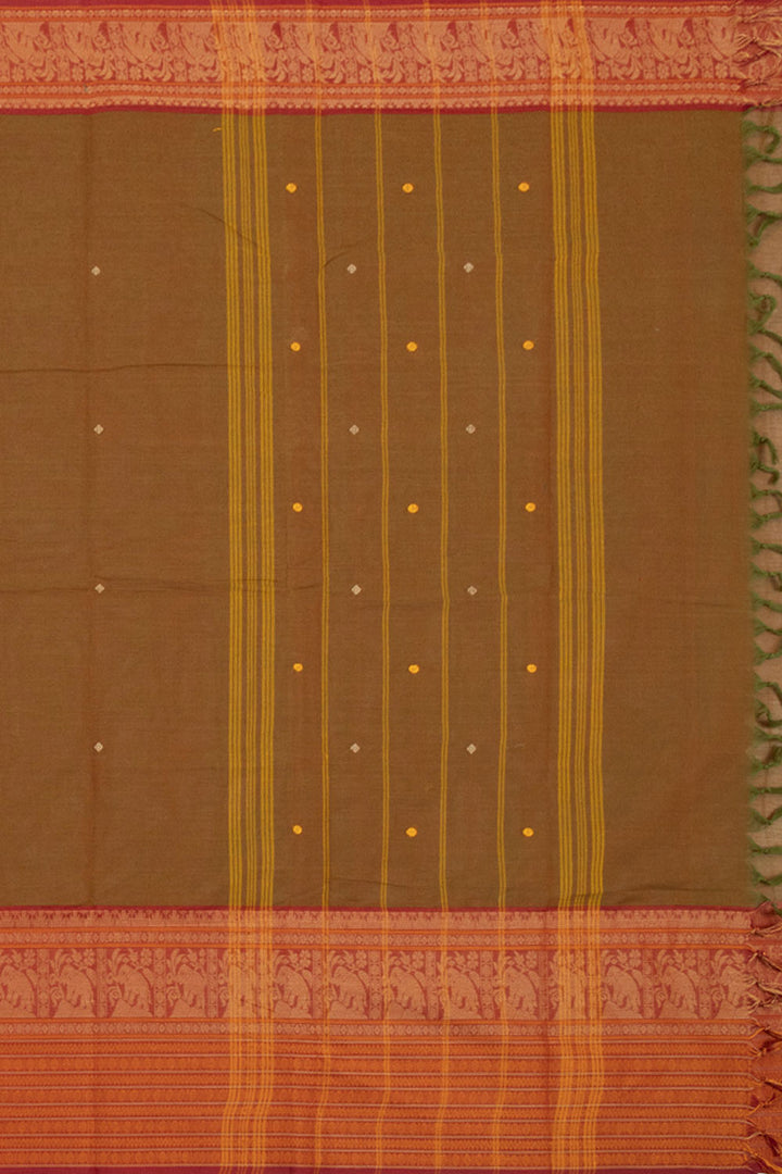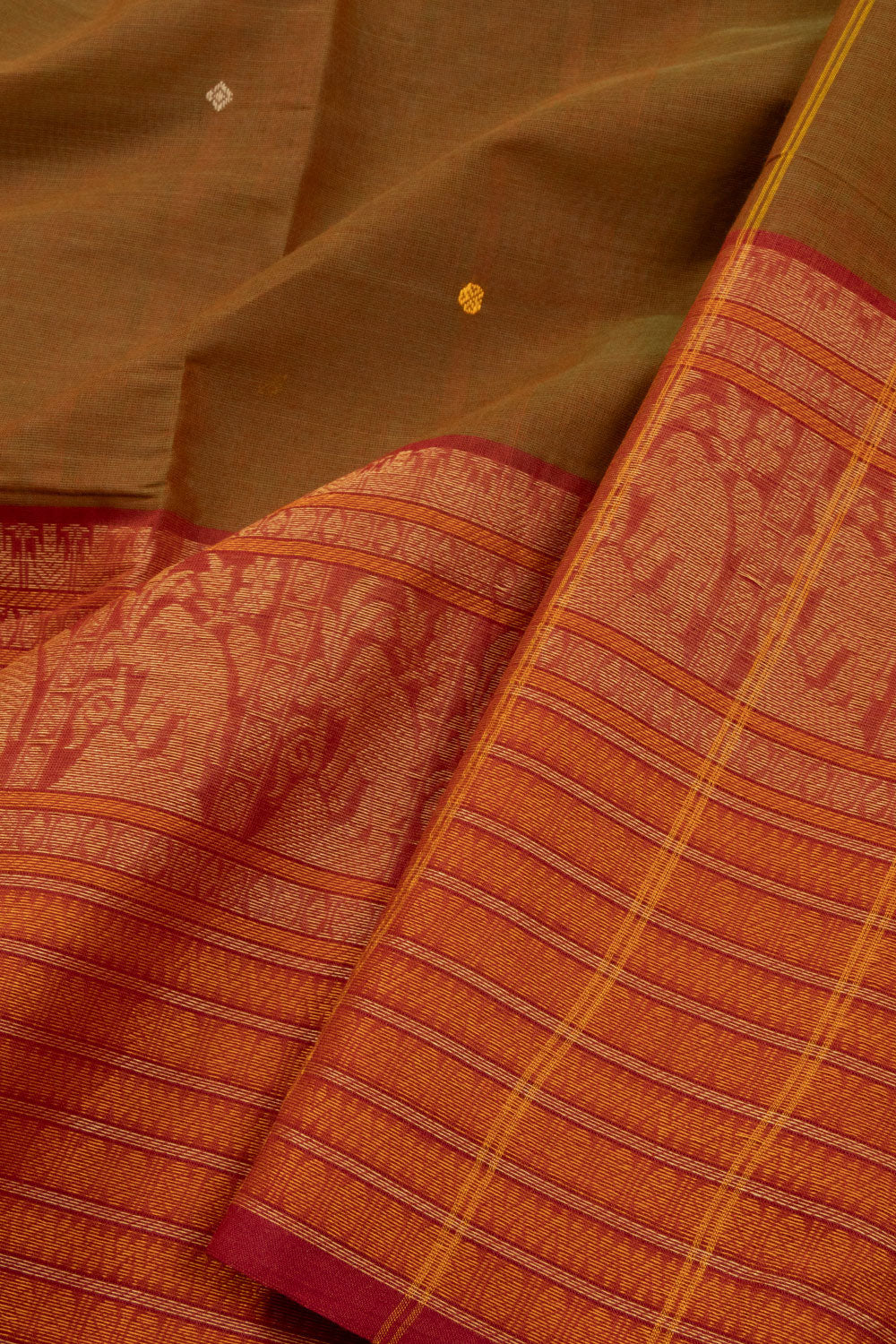 Elevate your style with our Dual Tone Brown Handloom Chettinad Cotton Saree! Made from high-quality handloom cotton, this saree features a unique dual-tone design, adding a modern twist to the traditional Chettinad style. Perfect for any occasion, this saree is sure to make a statement.