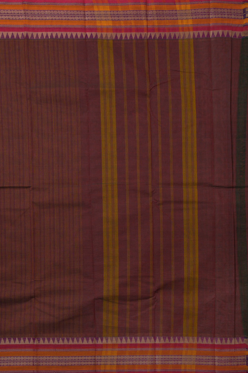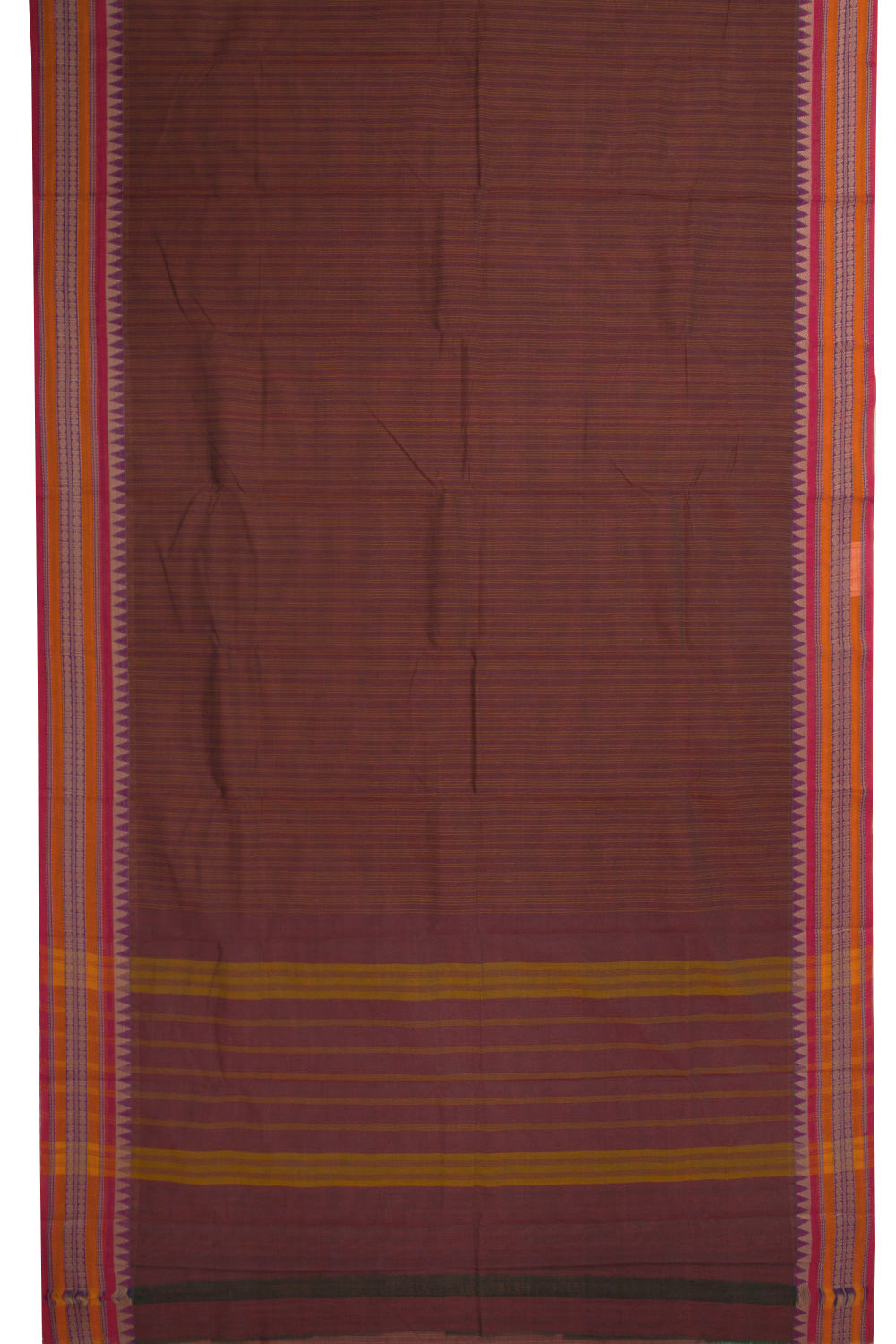 Indulge in the luxurious and traditional beauty of our Brown Handloom Chettinad Cotton Saree. Handcrafted with the highest quality cotton, this saree features intricate details and a rich brown color that will make you stand out in any occasion. Elevate your style with this timeless piece and feel confident and beautiful!