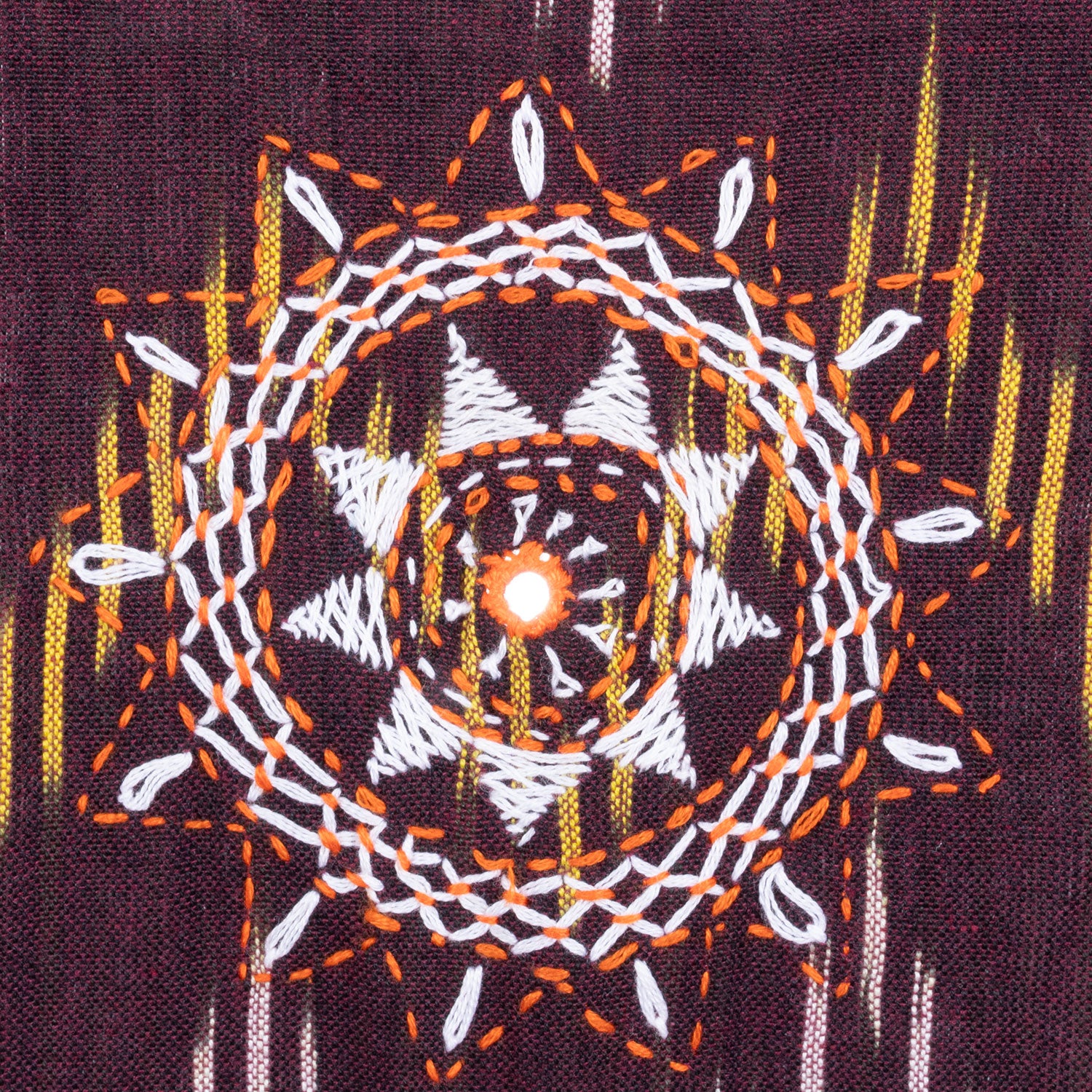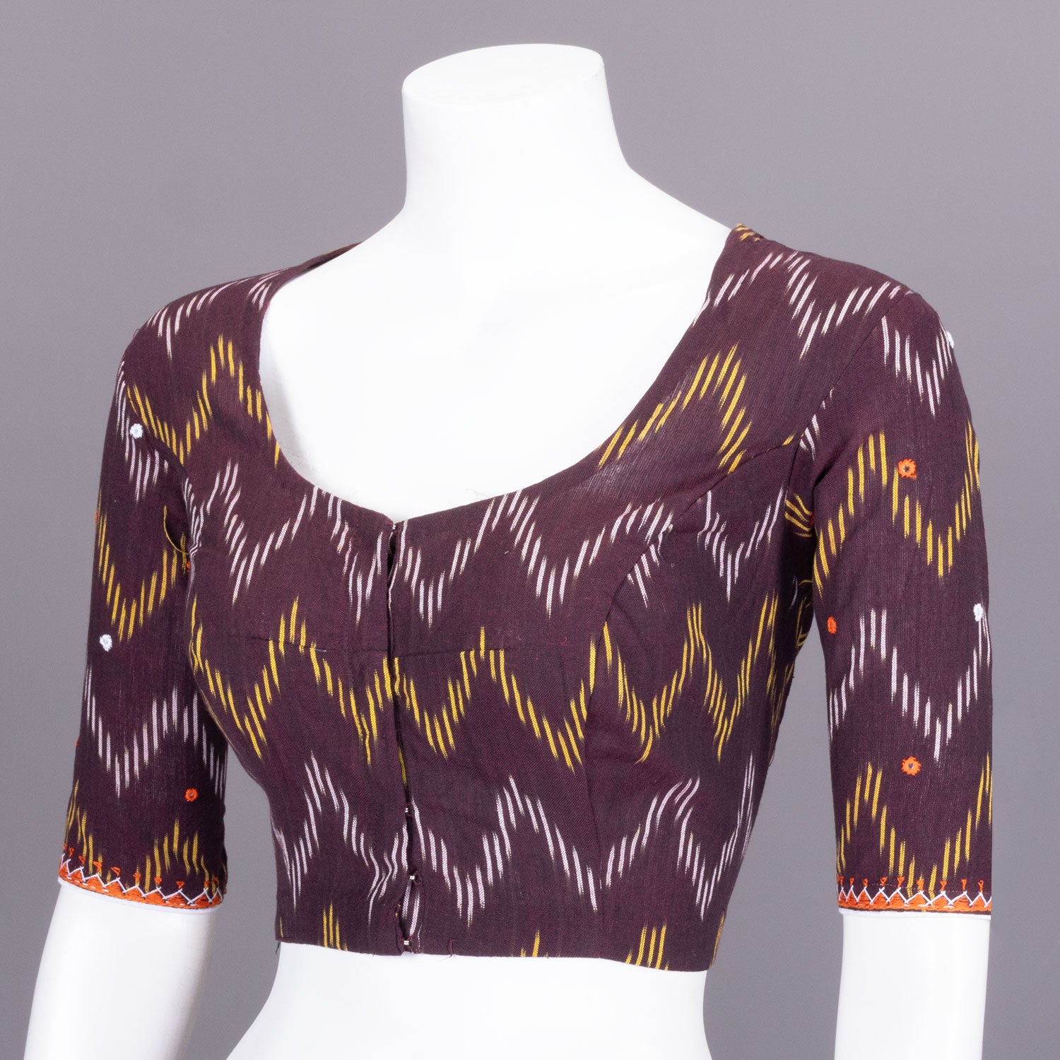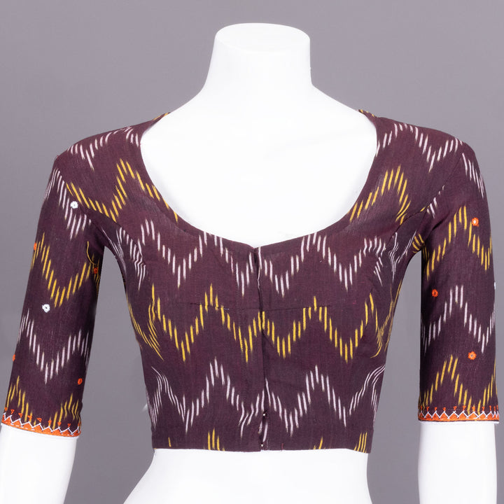 Brown Ikat Mirror Work Embroidered Cotton Blouse 10071413