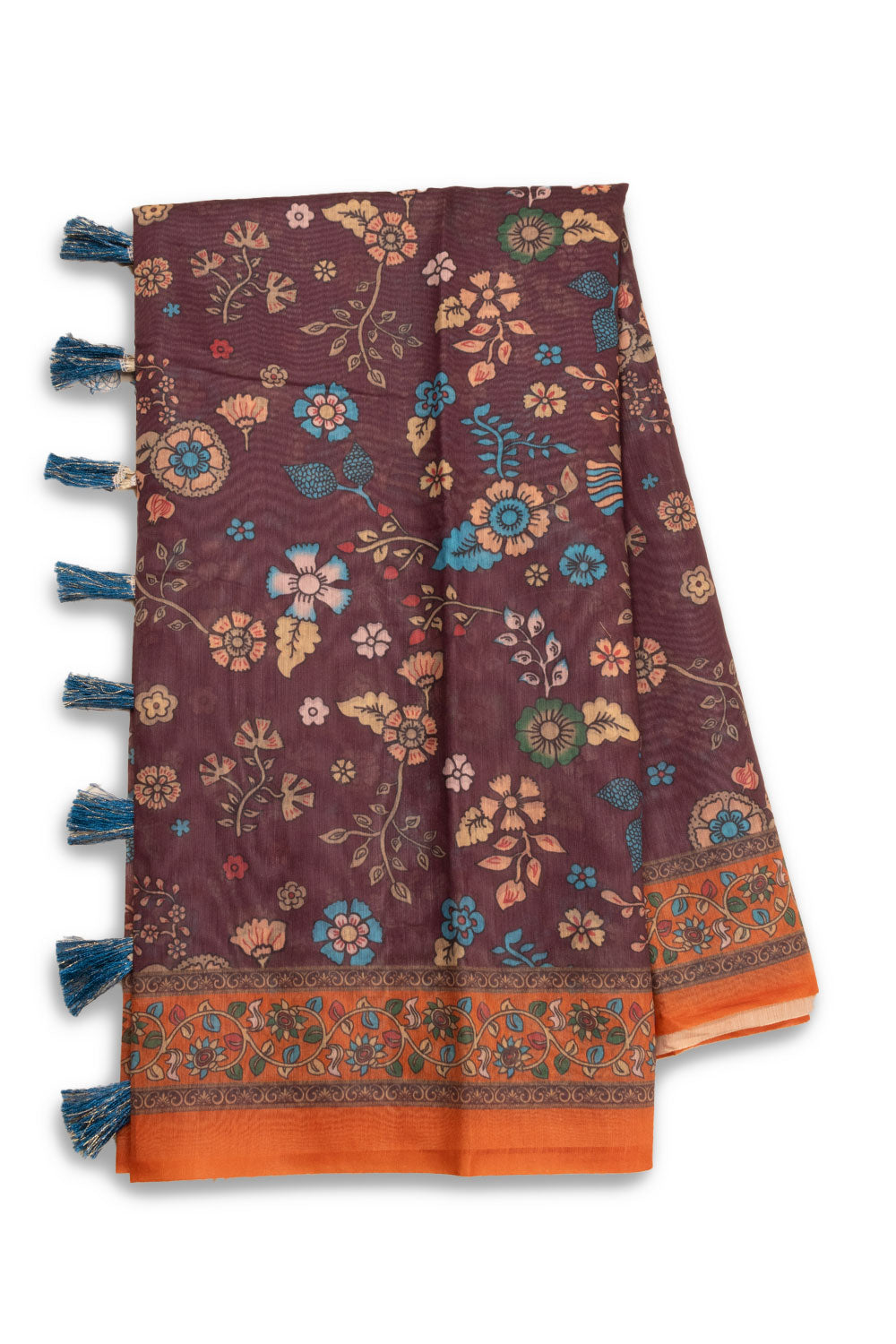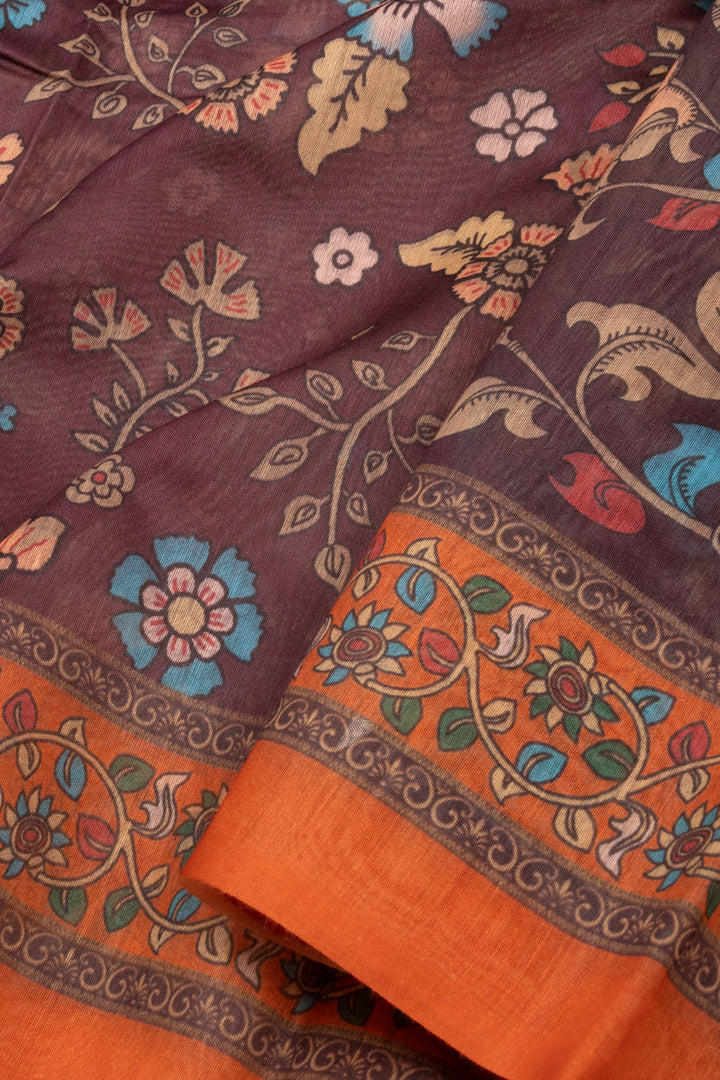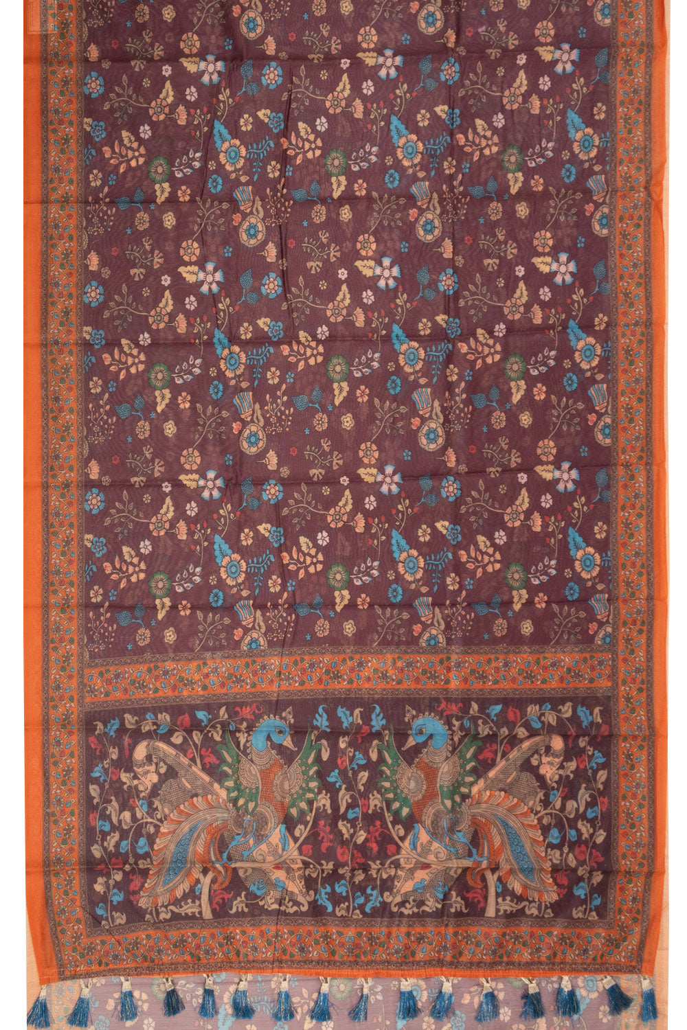 Brown Kalamkari Printed Malai Cotton Saree 10074691