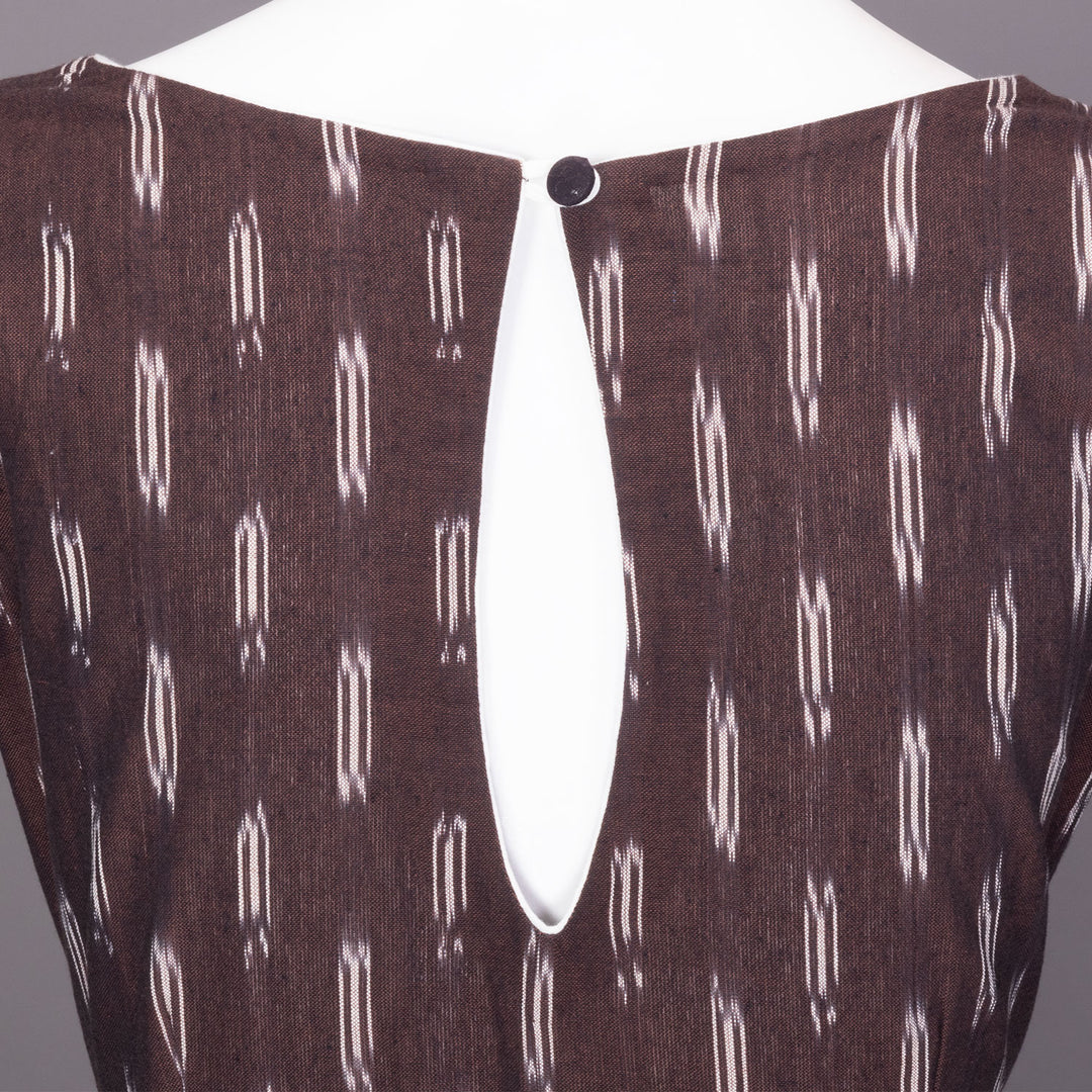 This brown Pochampally Ikat cotton blouse is a must-have addition to your wardrobe. Its unique pattern and comfortable fabric make it perfect for any occasion. Elevate your style with this versatile and timeless piece!