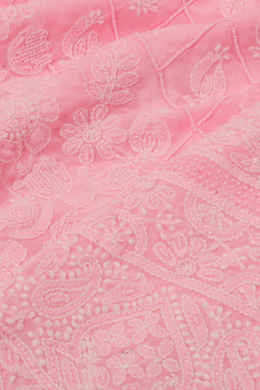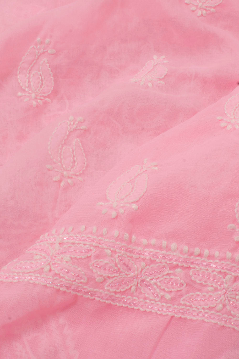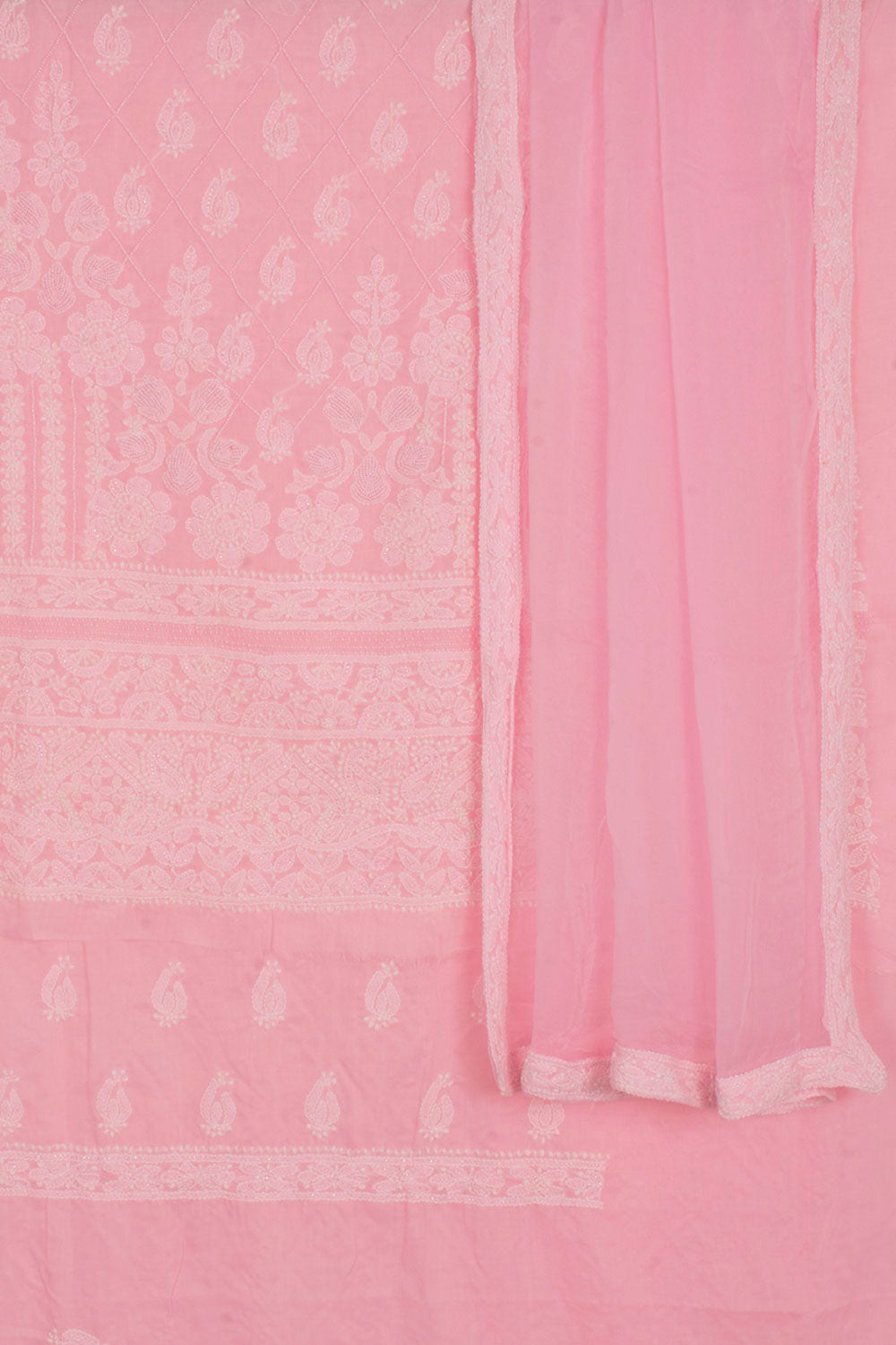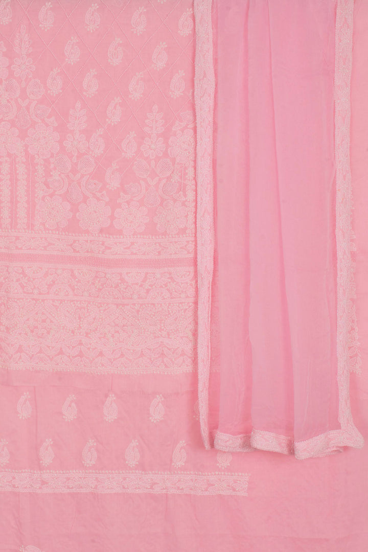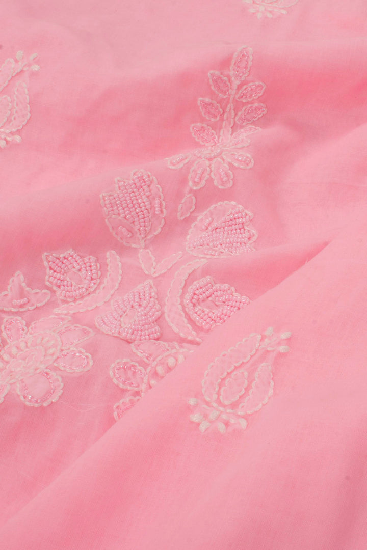 Hand Embroidered Chikankari Cotton 3-Piece Salwar Suit Material with Bead Work and Chiffon Dupatta 10057971