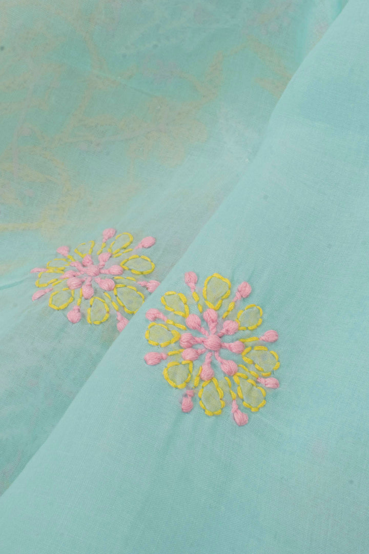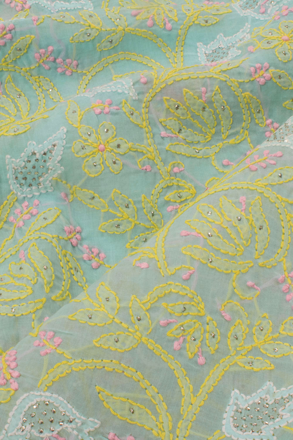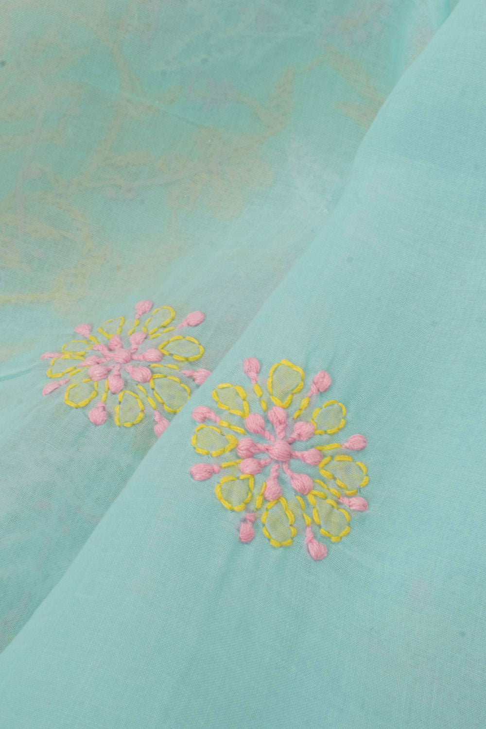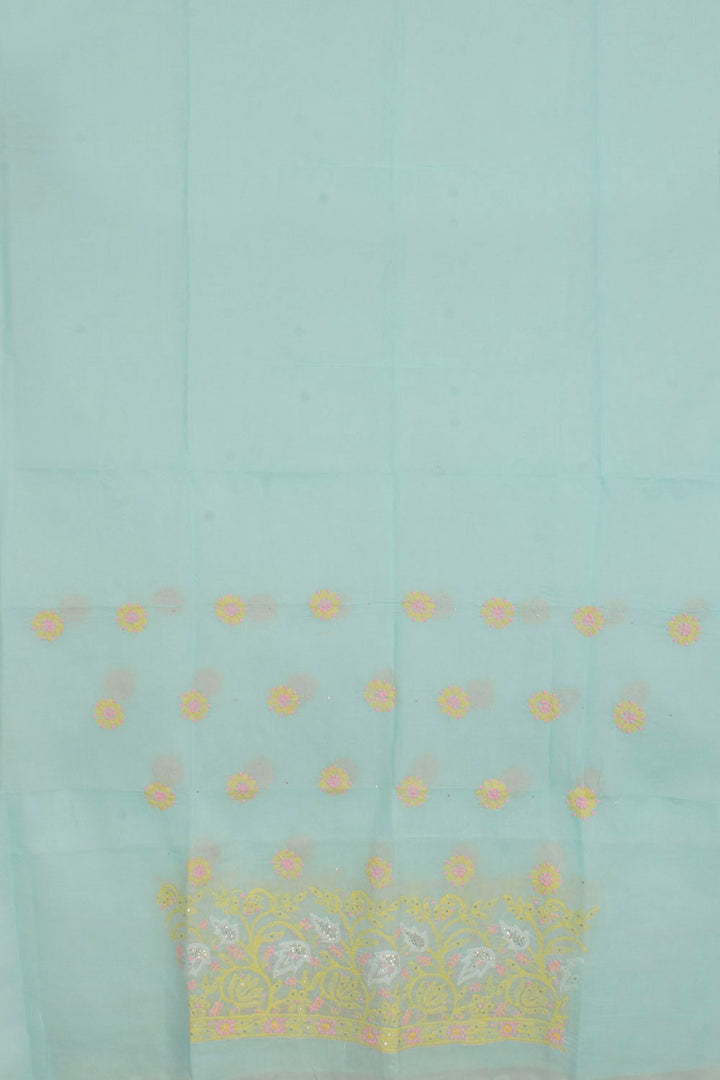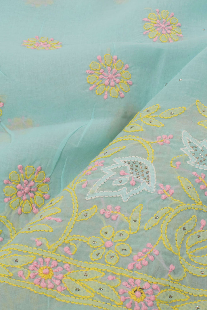 Hand Embroidered Chikankari Cotton 3-Piece Salwar Suit Material with Mukaish Work and Chiffon Dupatta 10057974
