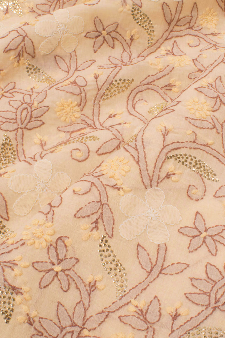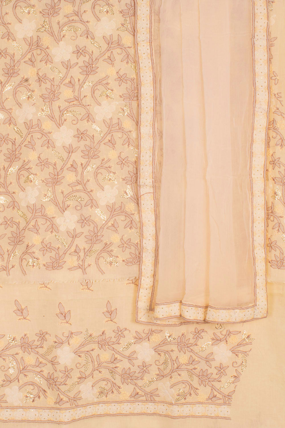 Hand Embroidered Chikankari Cotton 3-Piece Salwar Suit Material with Mukaish Work and Chiffon Dupatta 10057975