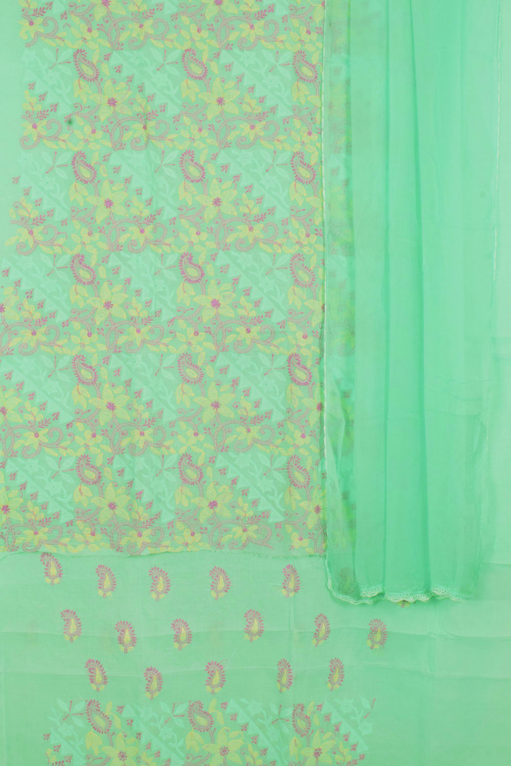 Hand Embroidered Chikankari Cotton 3-Piece Salwar Suit Material with Daraz Work and Chiffon Dupatta 10057976