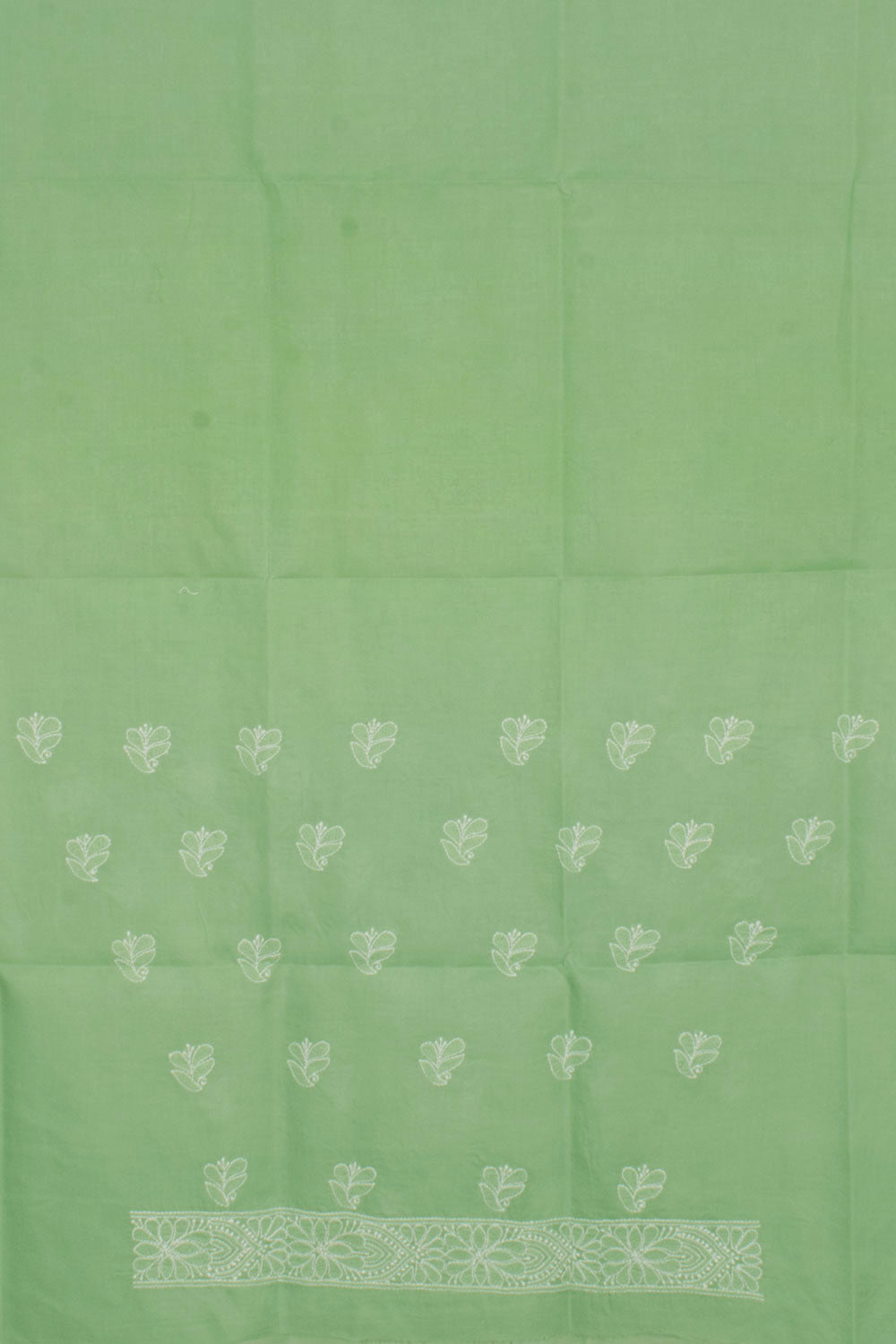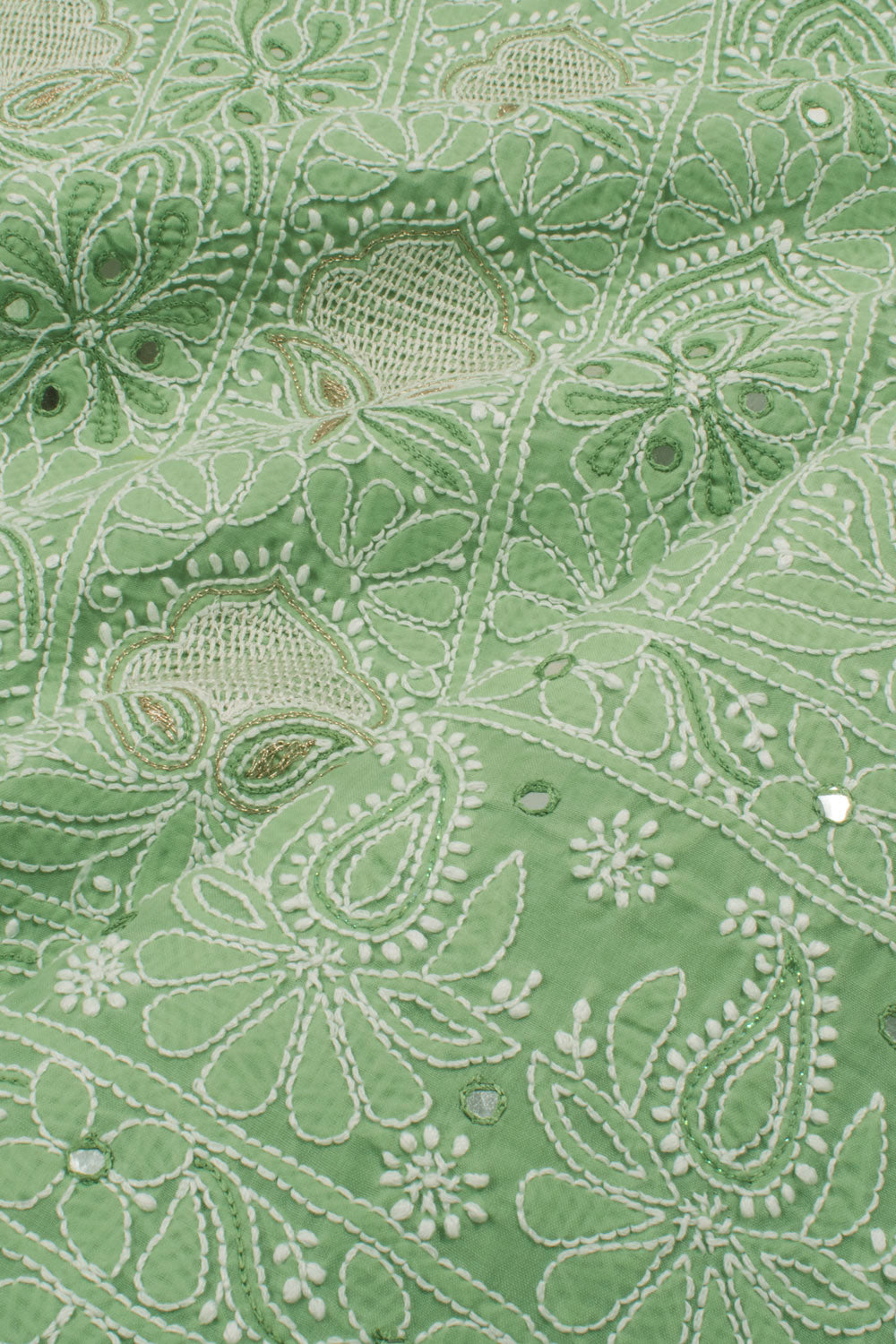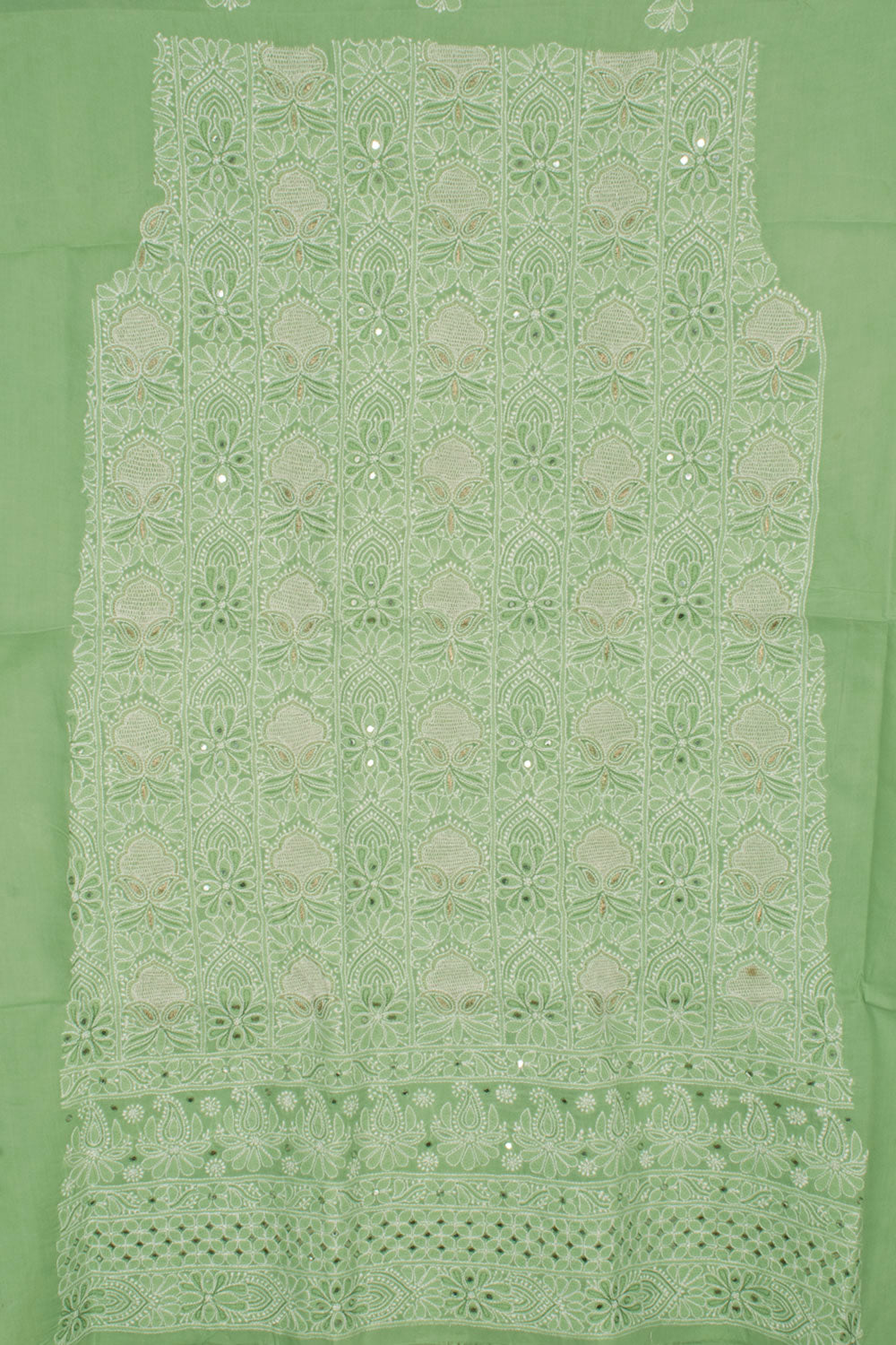 Hand Embroidered Chikankari Cotton 3-Piece Salwar Suit Material with Mirror, Zari Work and Chiffon Crochet Border Dupatta 10057980