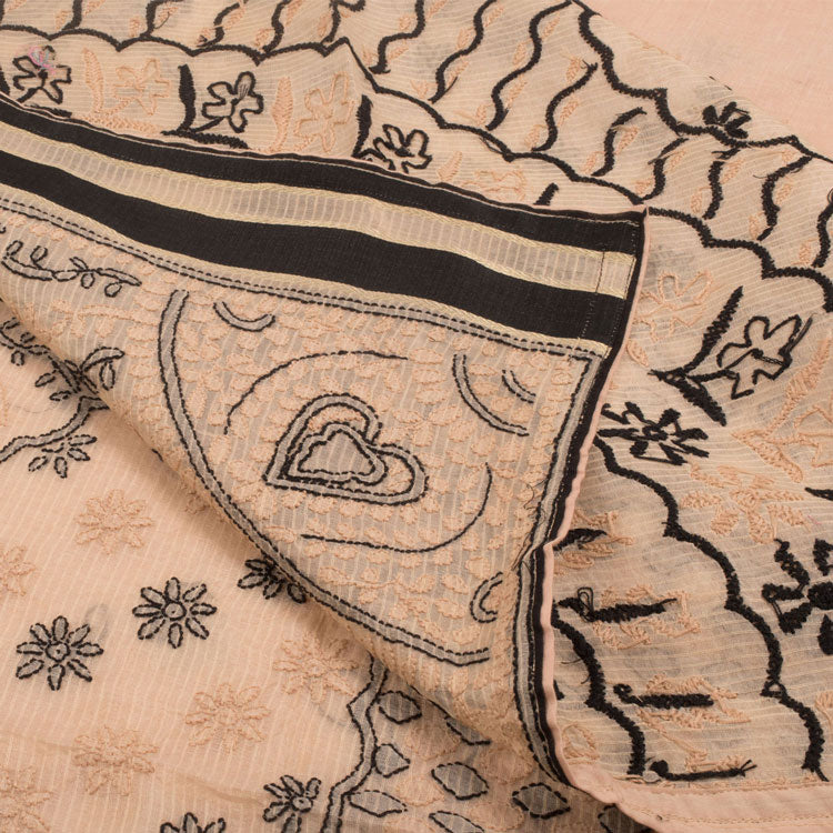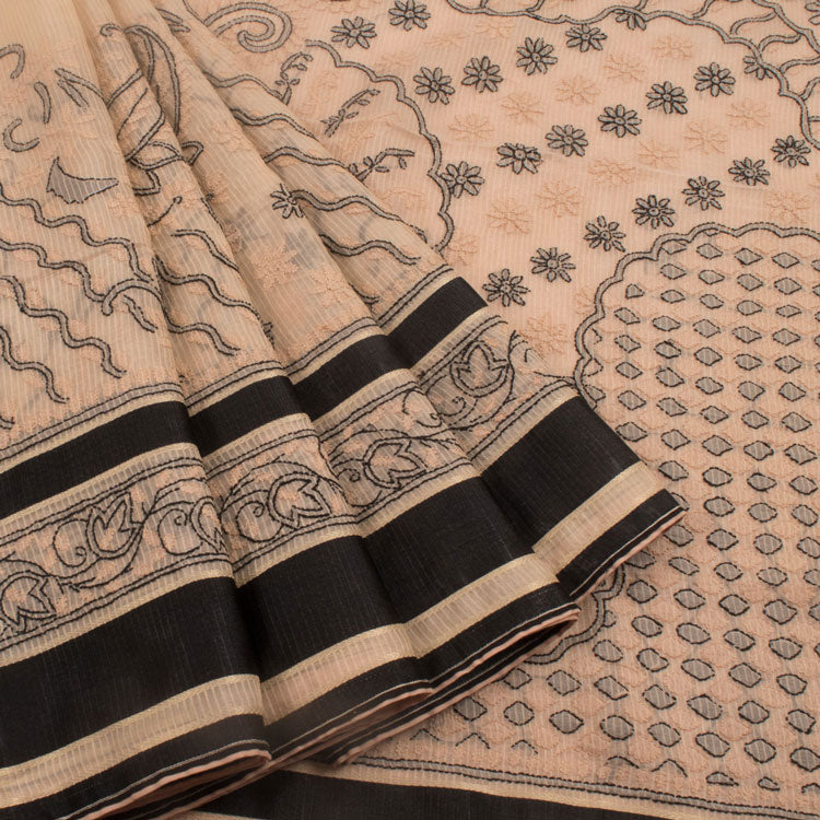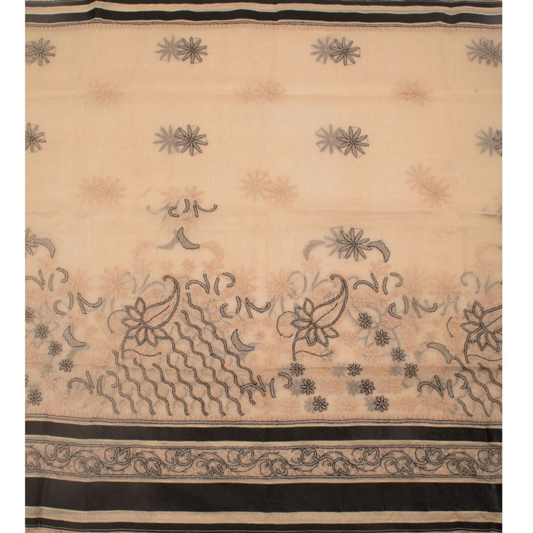 Hand Embroidered Cream Chikankari Silk Cotton Saree With Floral Motifs 10011473