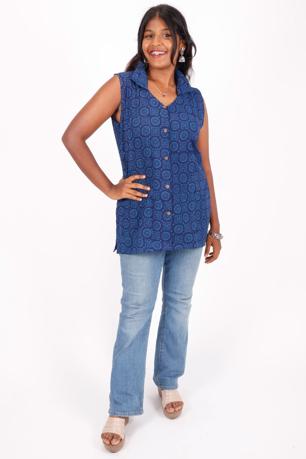 Experience vibrant elegance with this Blue Hand Block Printed Cotton Kurti. Crafted from breathable cotton, it offers comfort and style for everyday wear. The intricate hand block prints add a unique, artisanal touch, making it perfect for casual outings or festive occasions. Embrace tradition with a modern flair and elevate your wardrobe effortlessly.