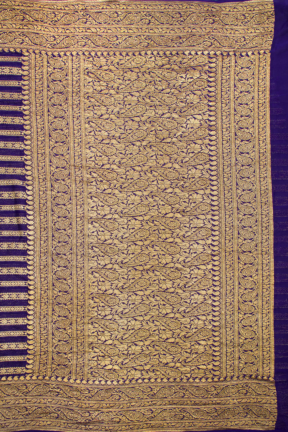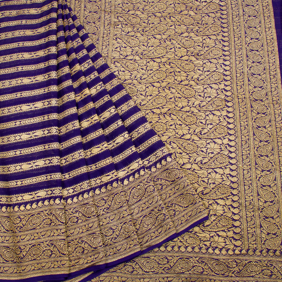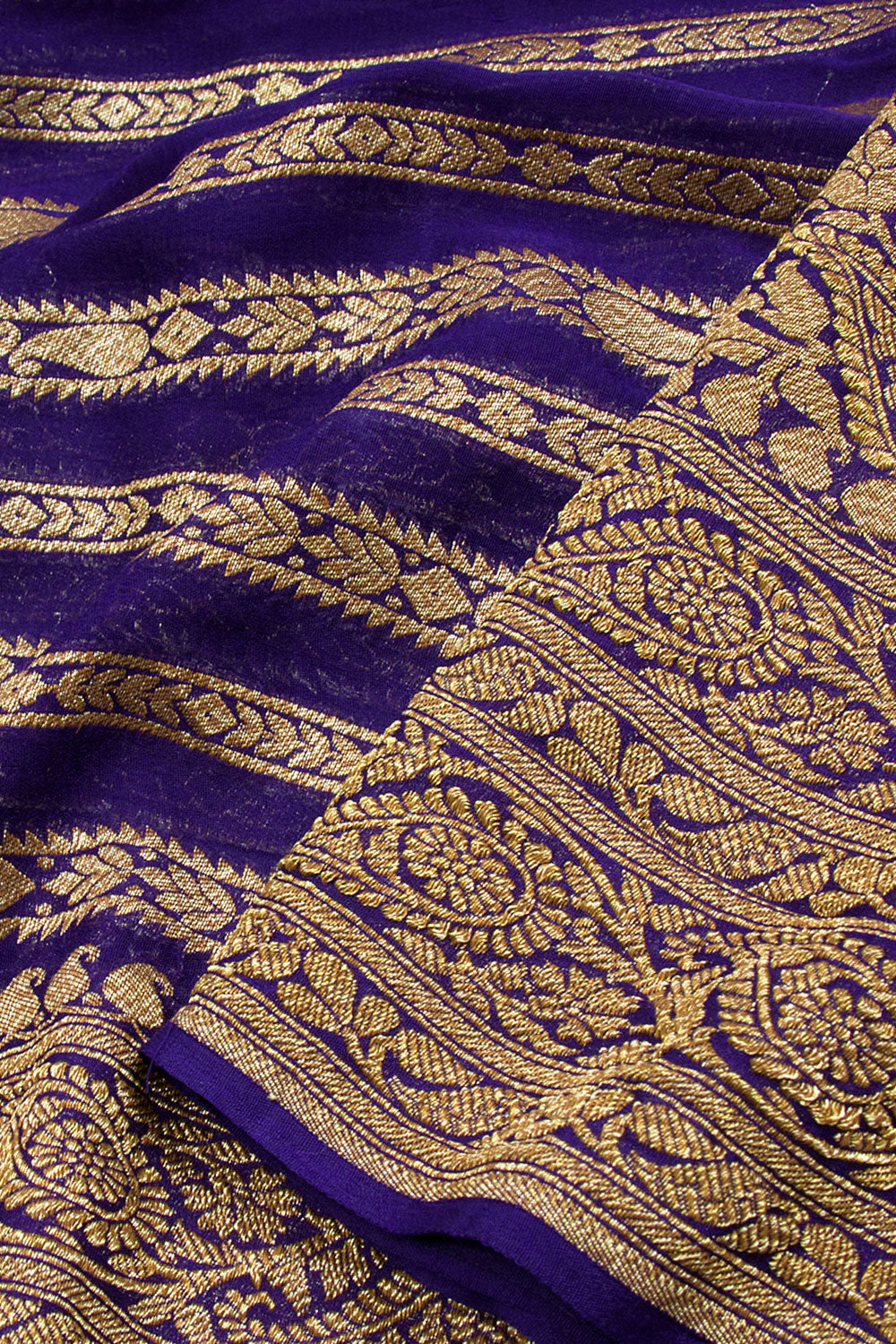 Cloud Burst Blue Handloom Khaddi Banarasi Chiffon Saree 10062769