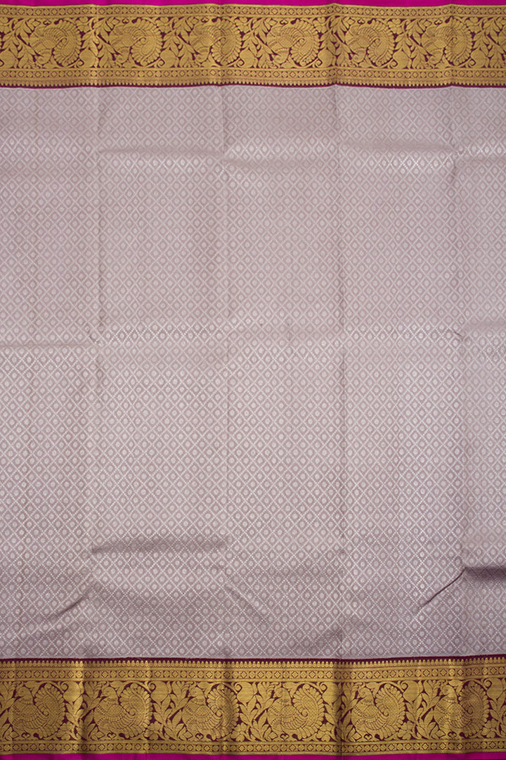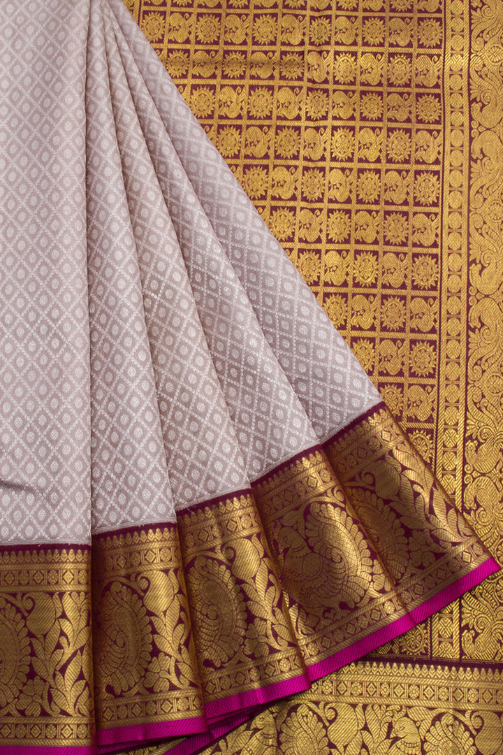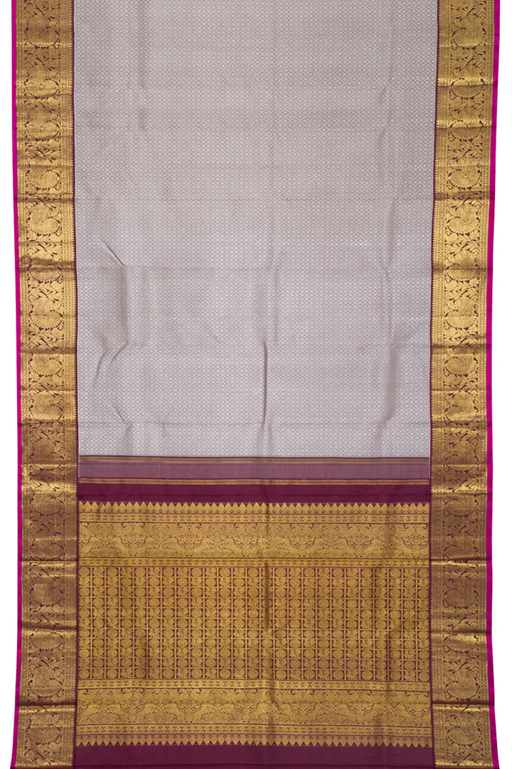 Cloudy Grey Pure Zari Korvai Jacquard Kanjivaram Silk Saree 10062464