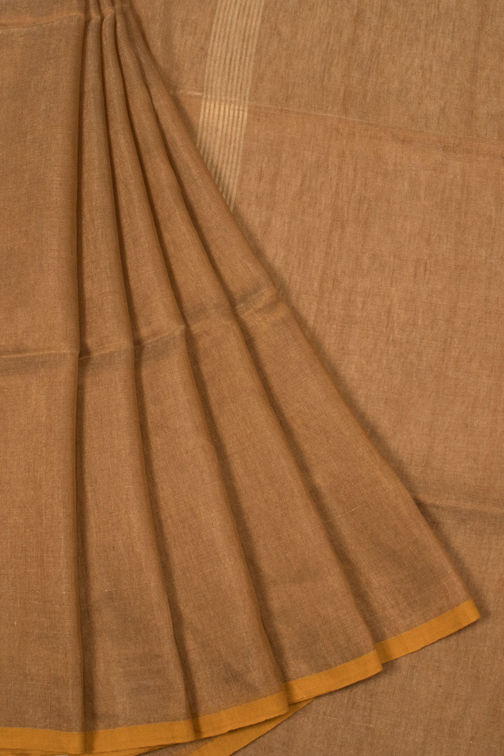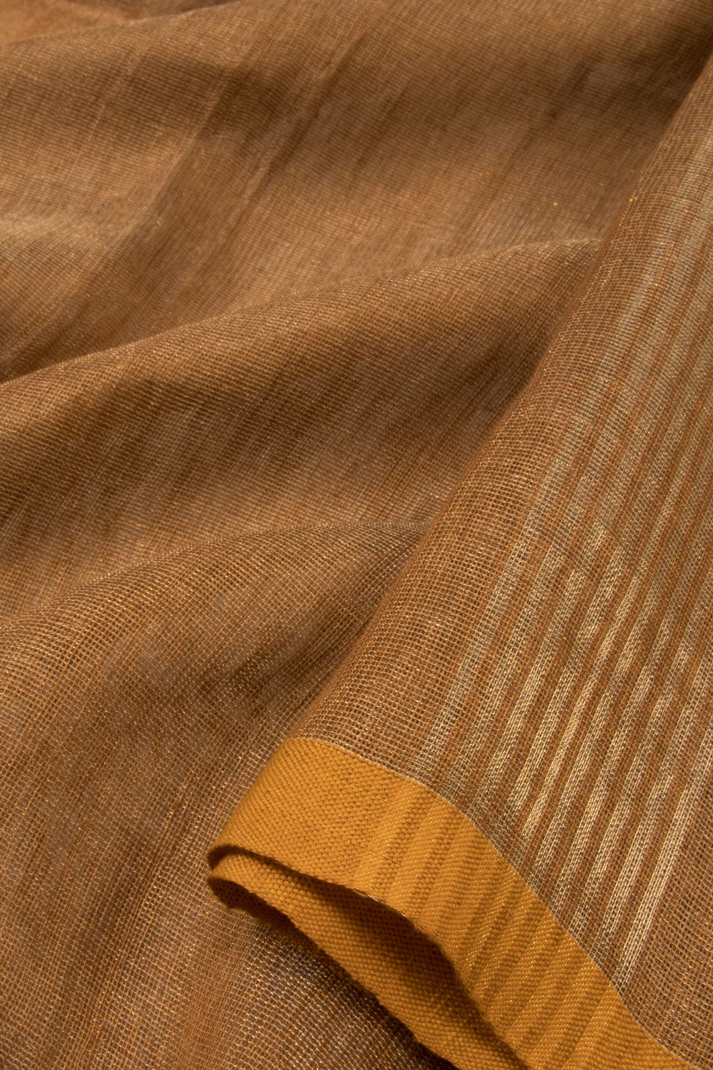 Coffee Brown Handloom Bengal Linen Cotton Saree 10063729