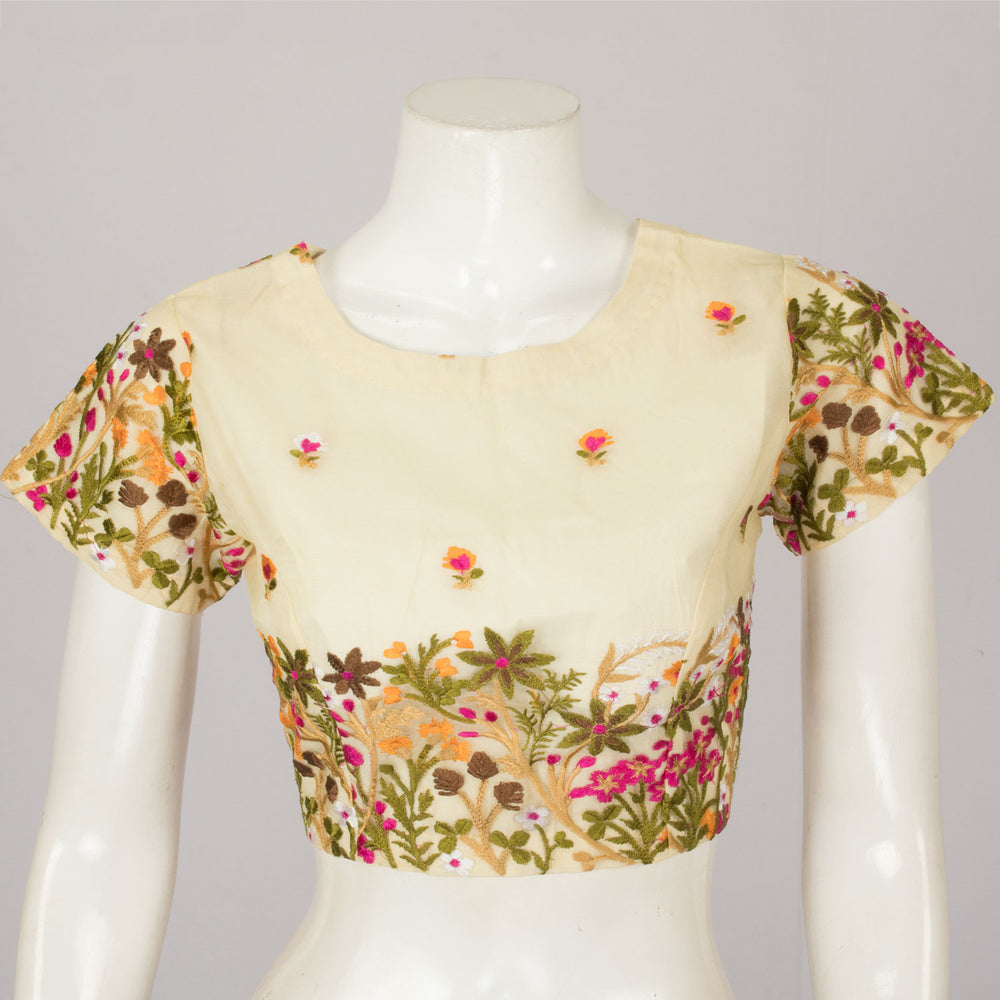 Cream Hand Embroidered Net Silk Blouse 10064905