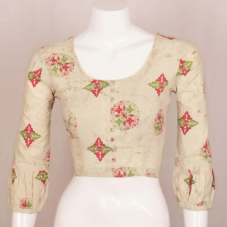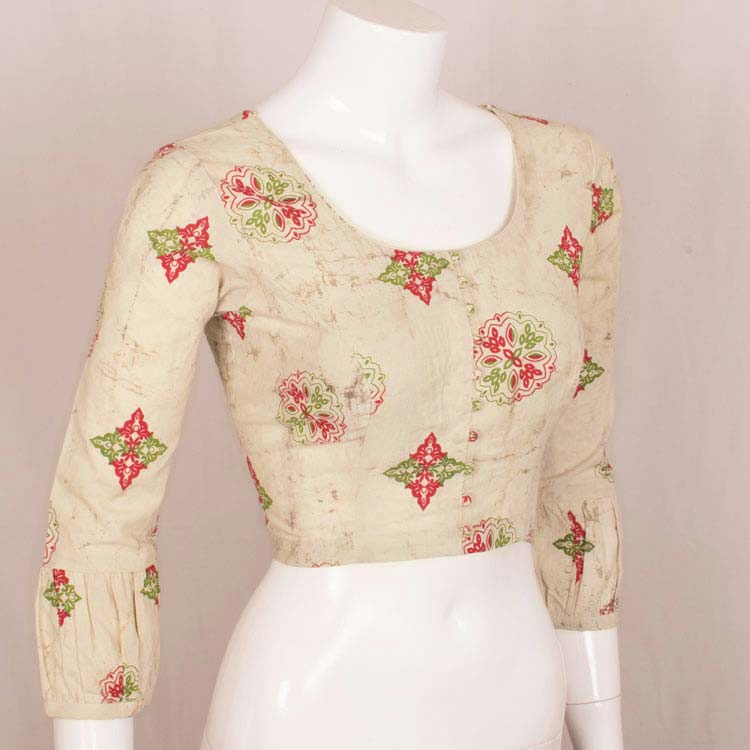 White Hand Block Dabu Printed Cotton Blouse 10048896