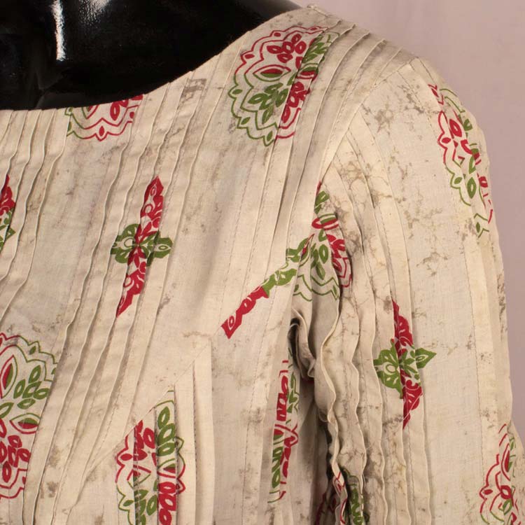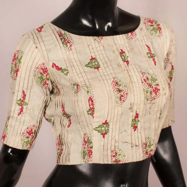 Hand Block Printed Cotton Blouse with Pintuck Design and Side Zip 10048897