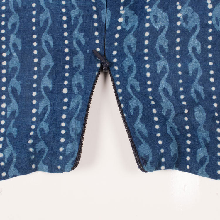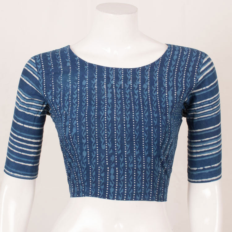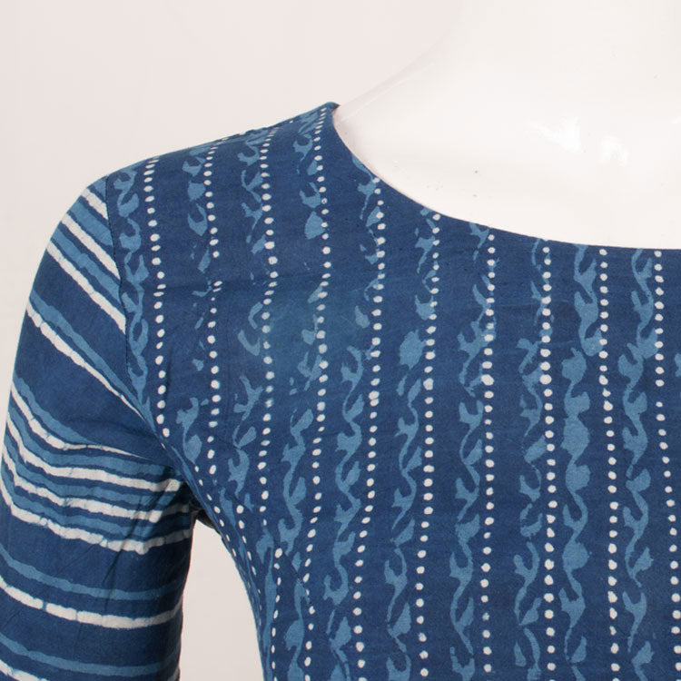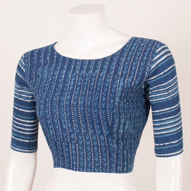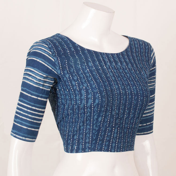Dabu Printed Princess Cut Indigo Cotton Blouse with Stripes Design and Side Zip 10052590