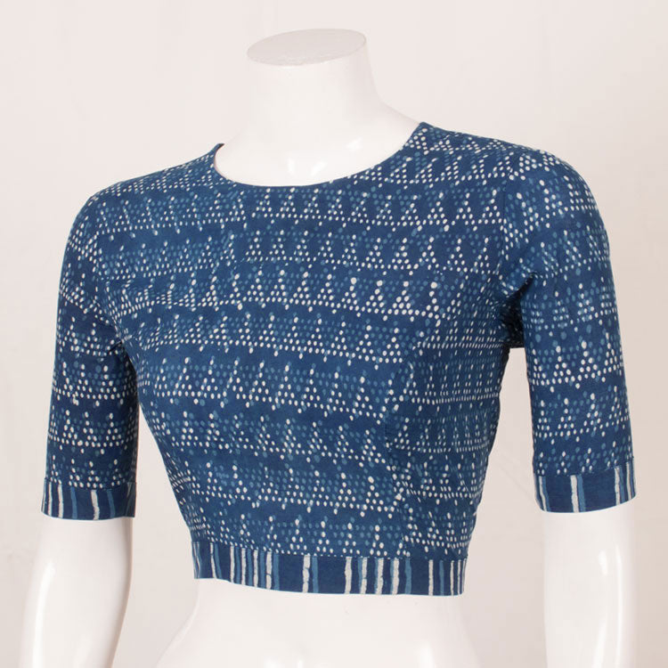 Indigo Blue Dabu Printed Cotton Blouse 10052612