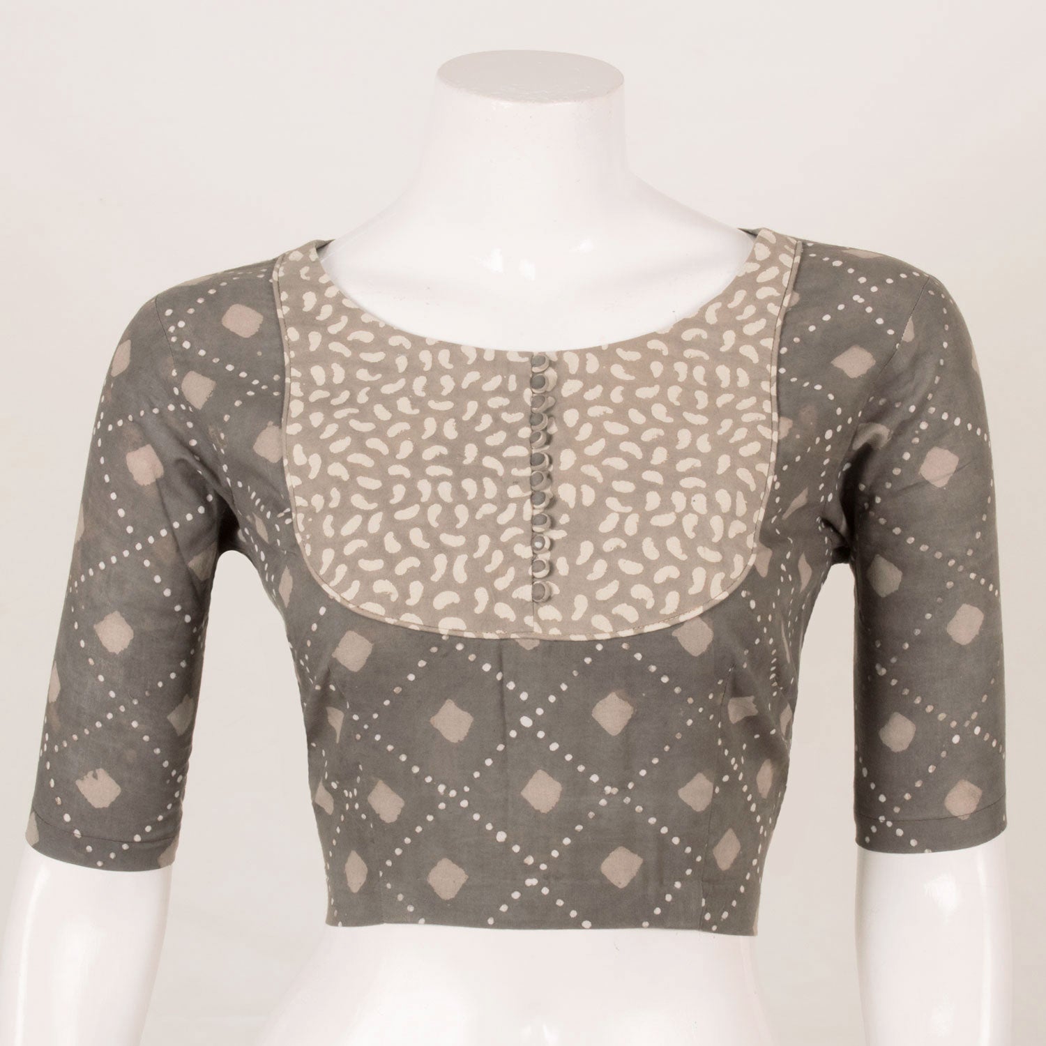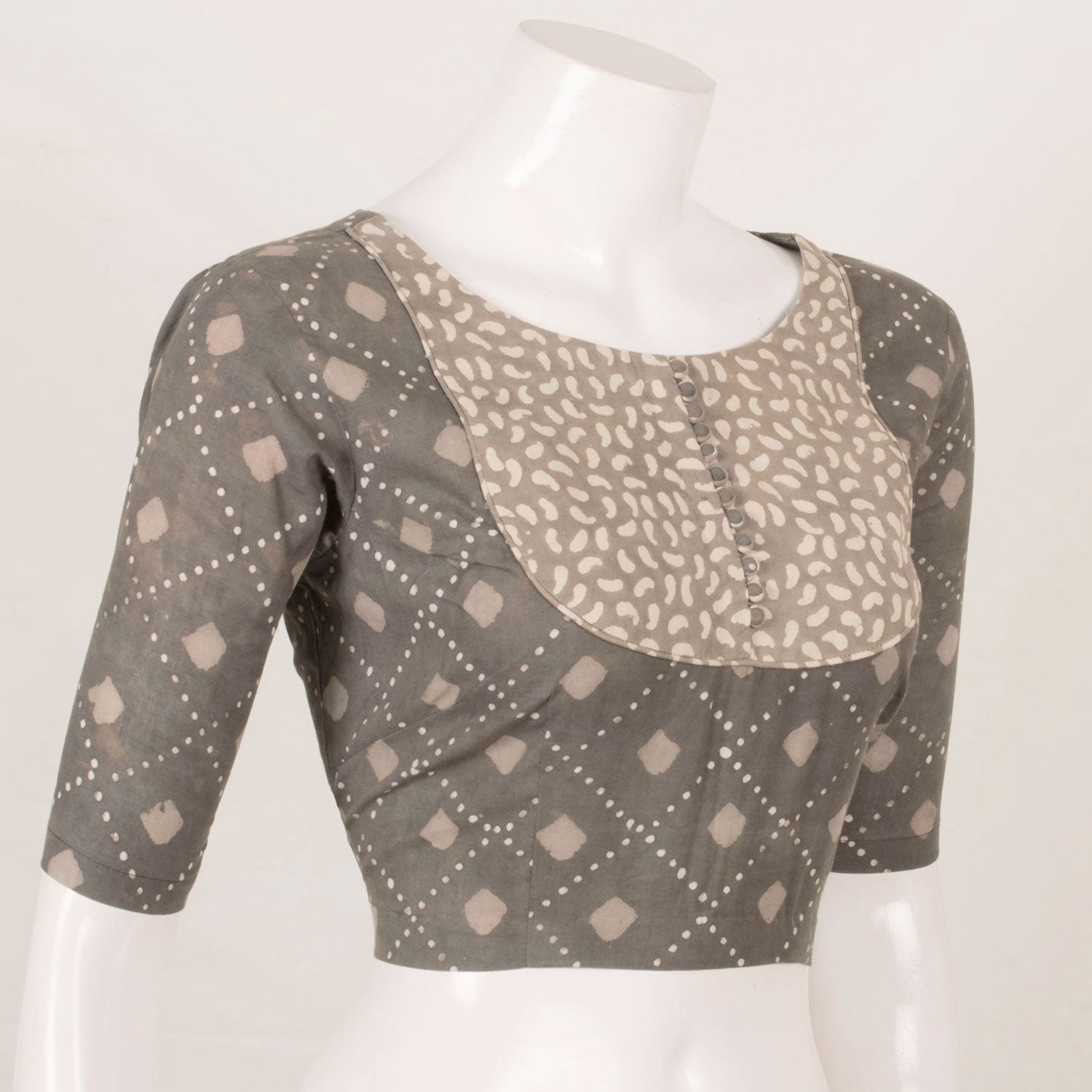 Dabu Printed Cotton Blouse with Boondhi Buttons and Side Zip 10053557 - 38