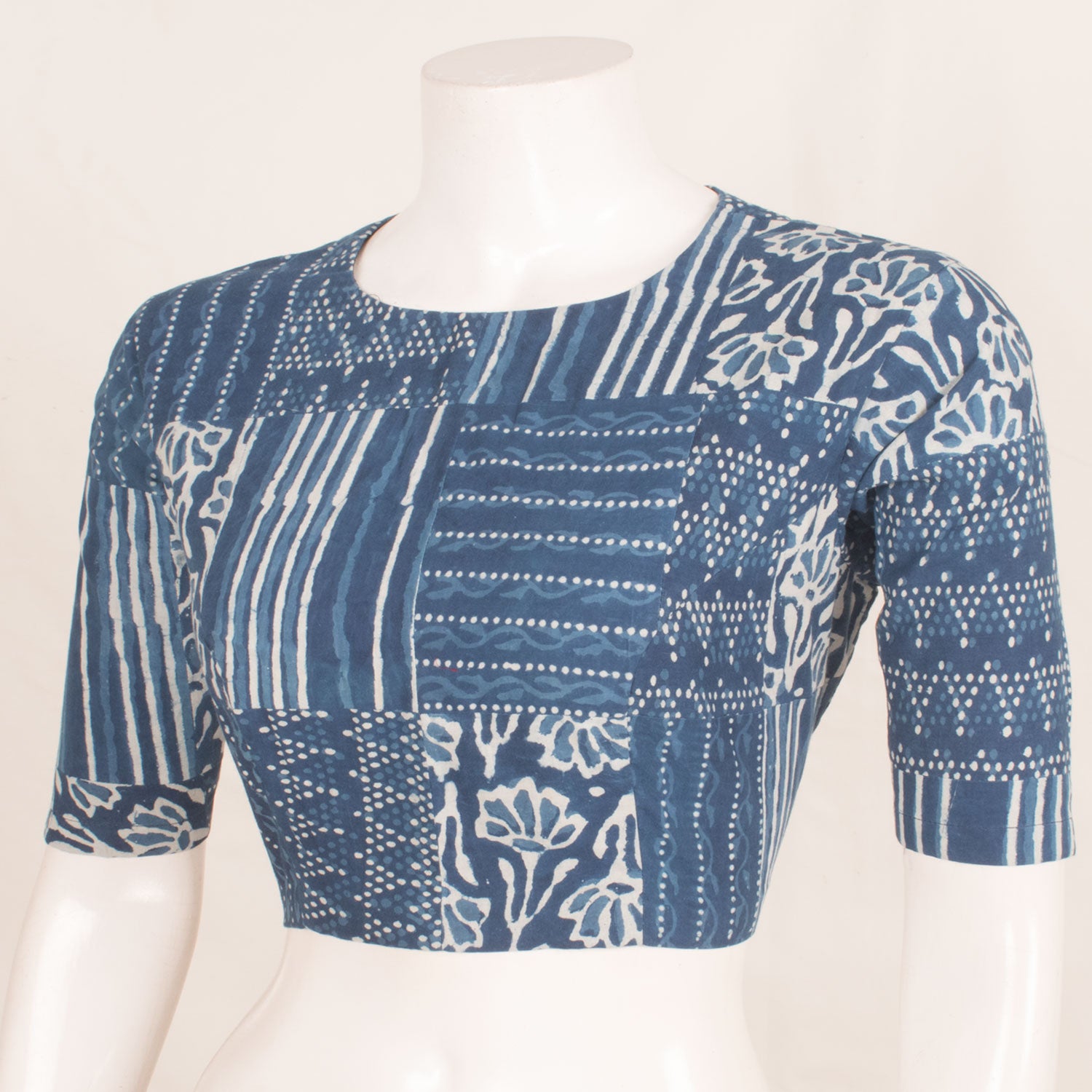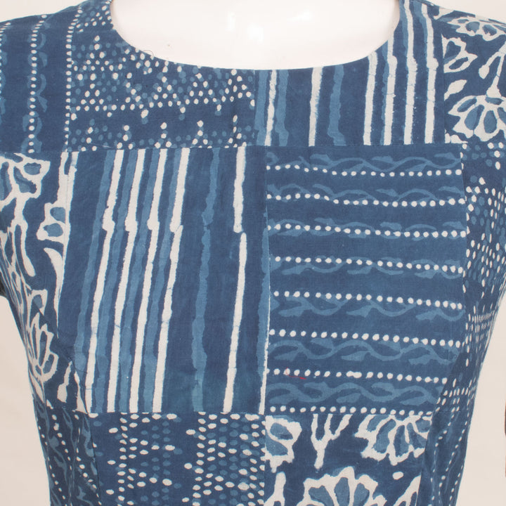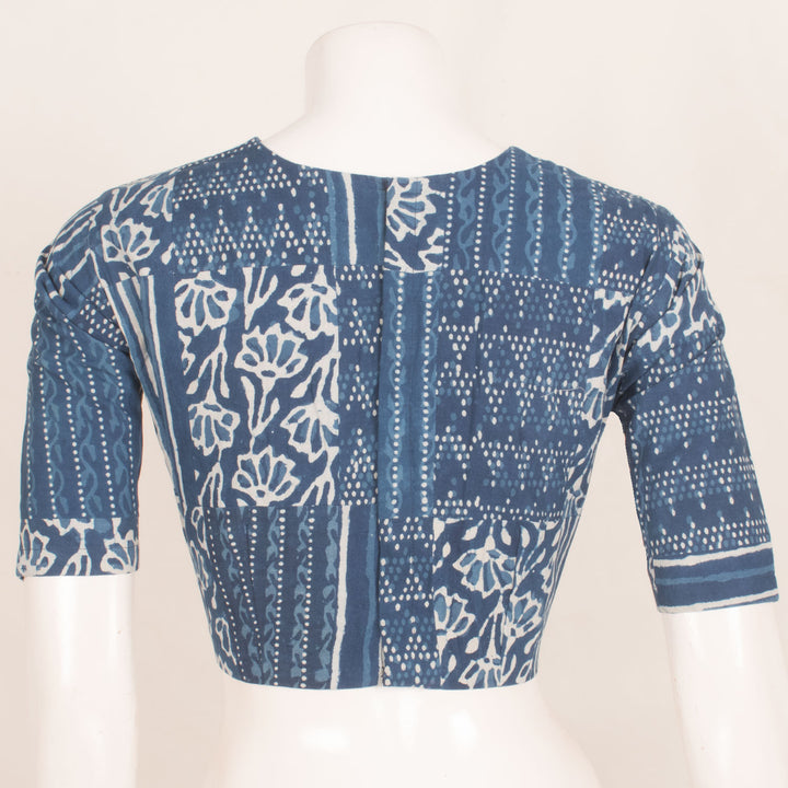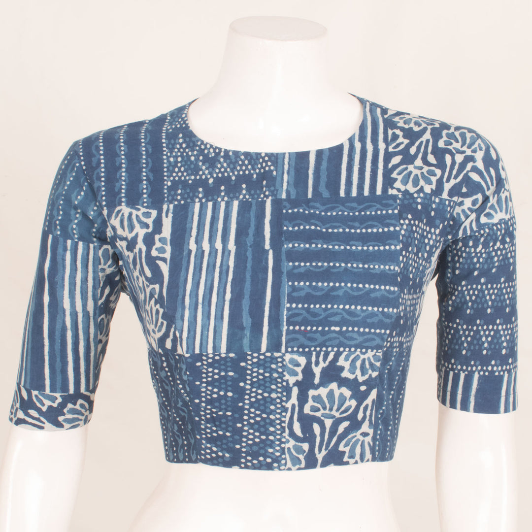 Dabu Printed Cotton Blouse with Patch Work and Back Open 10059257