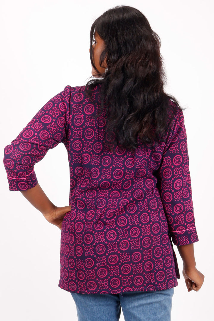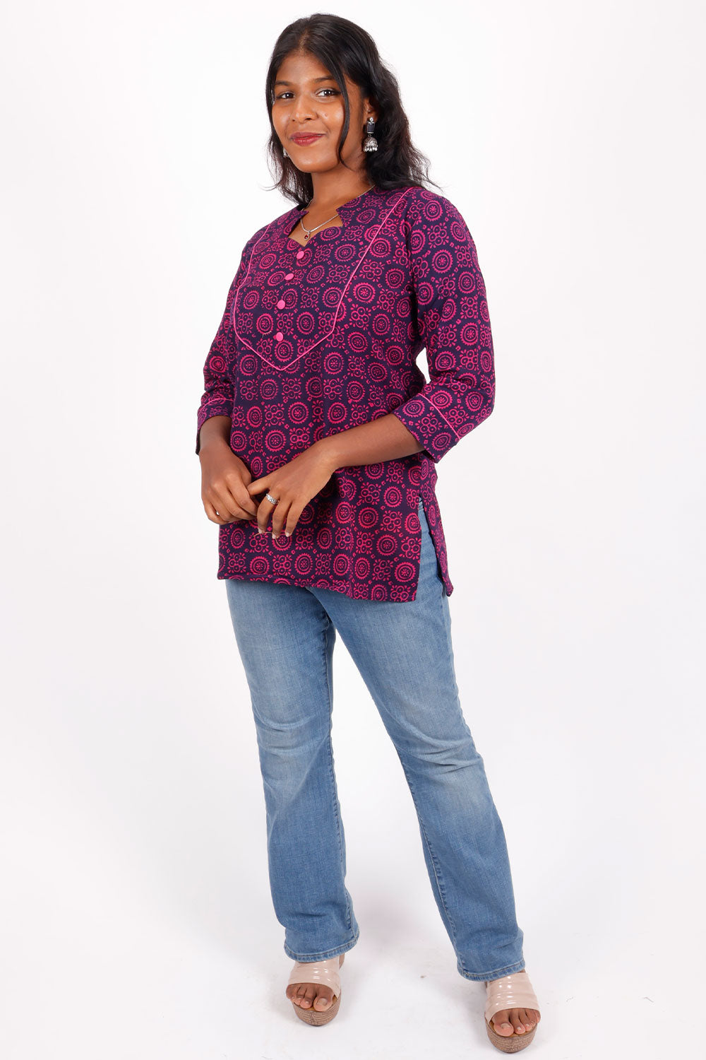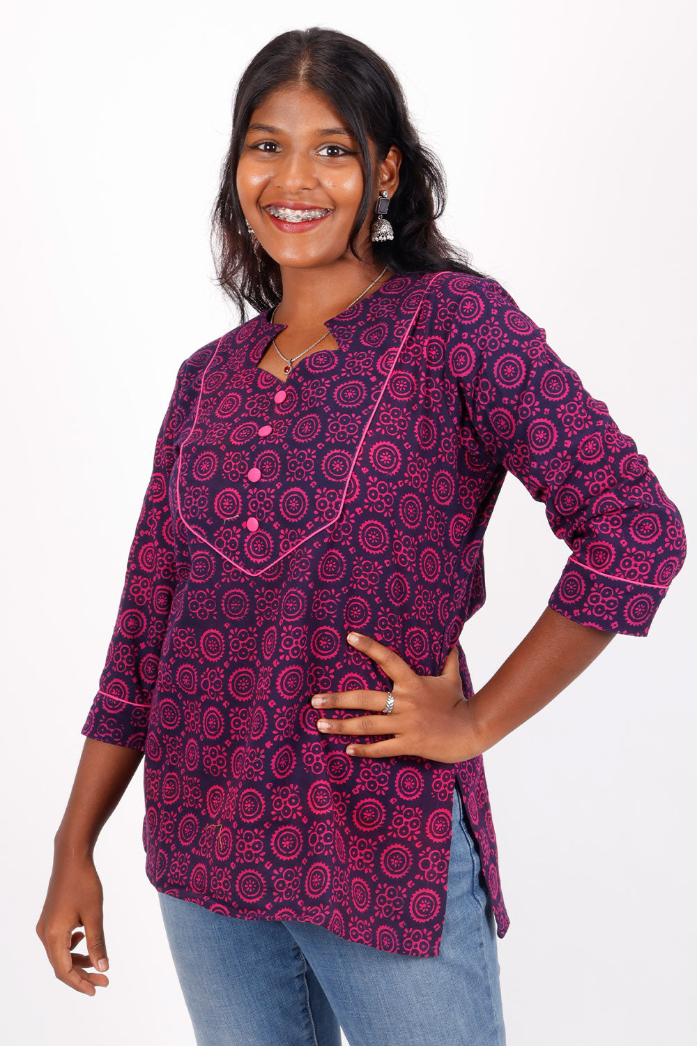 Dark Blue Hand Block Printed Cotton Kurti 10071540