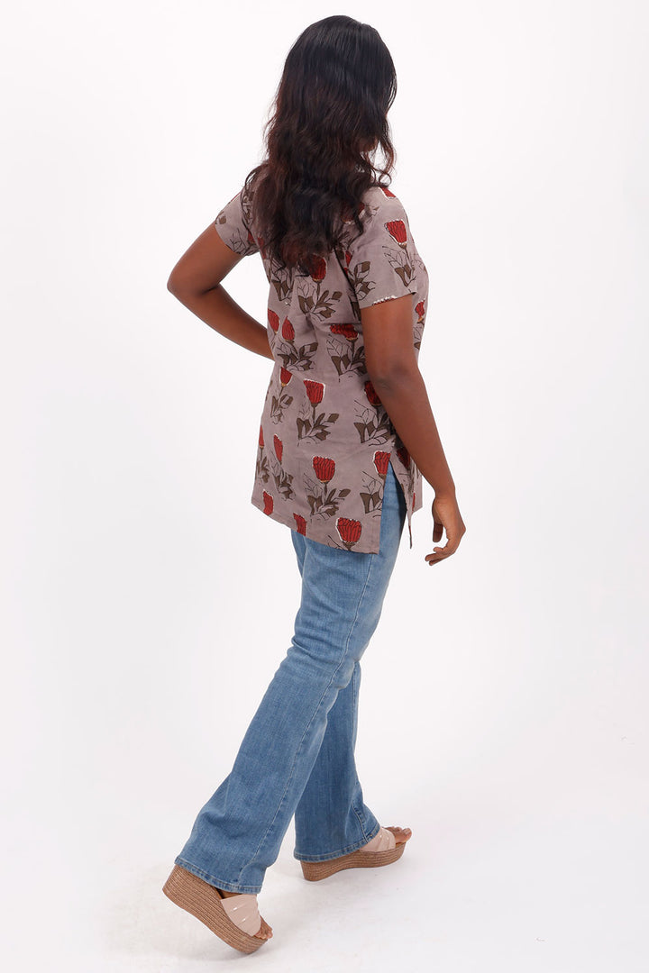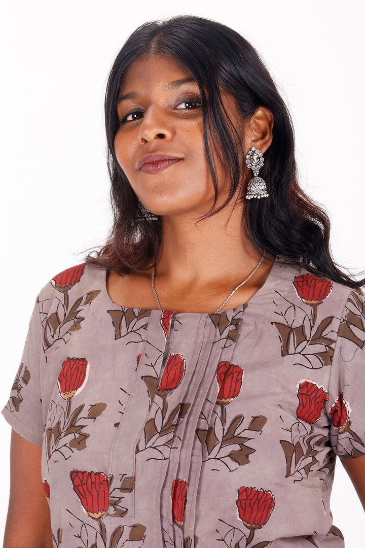 Dusty Gray Jahota Hand Block Cotton Kurti 10072360