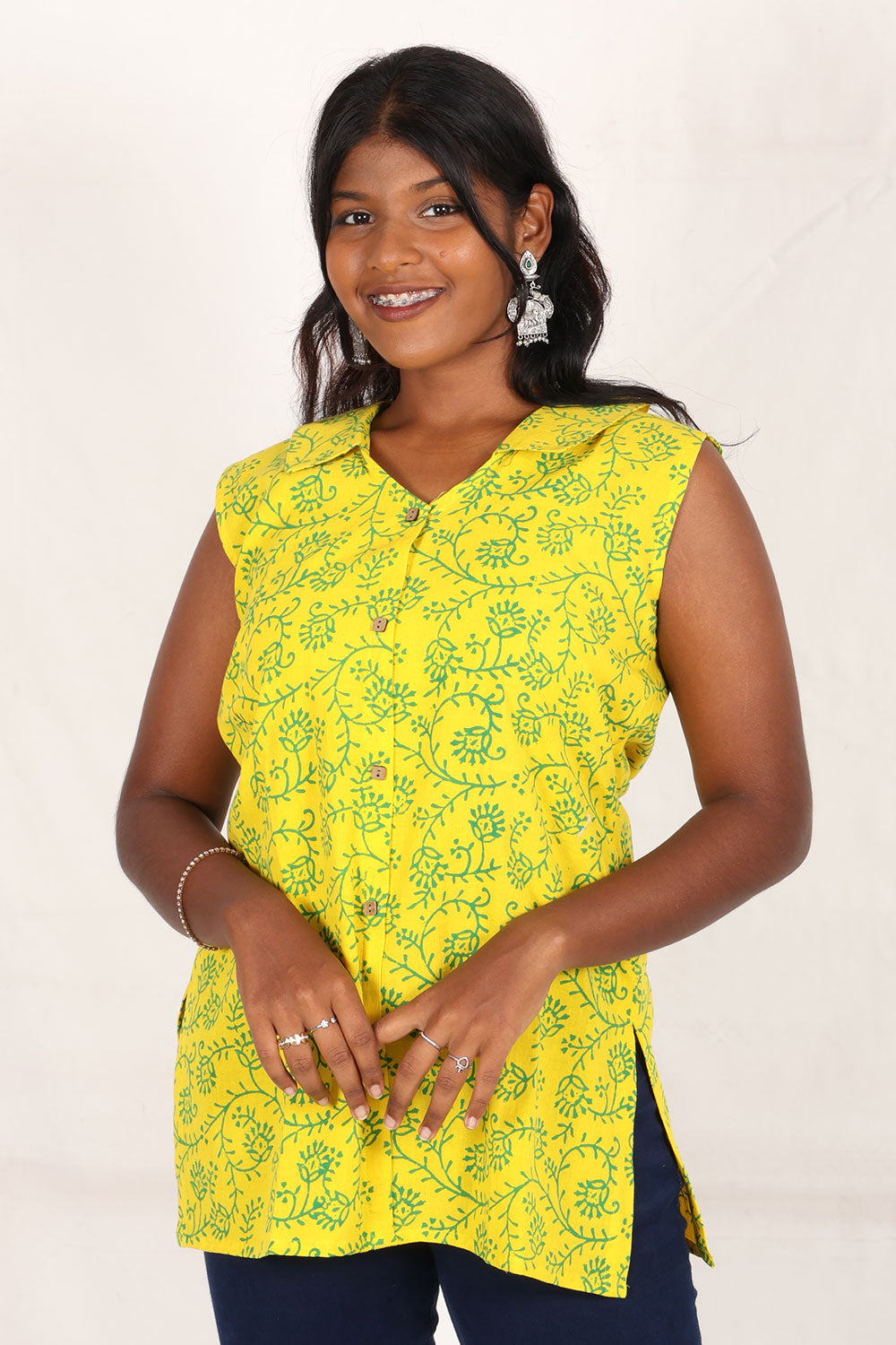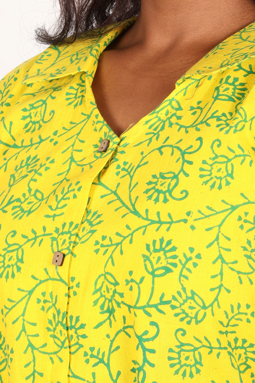 Electric Yellow Hand Block Printed Cotton Kurti 10071528