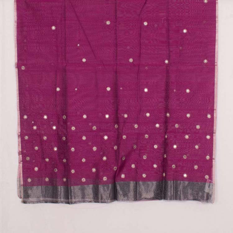 Hand Embroidered Chanderi Silk Cotton Dupatta With Mirror Work 10032828