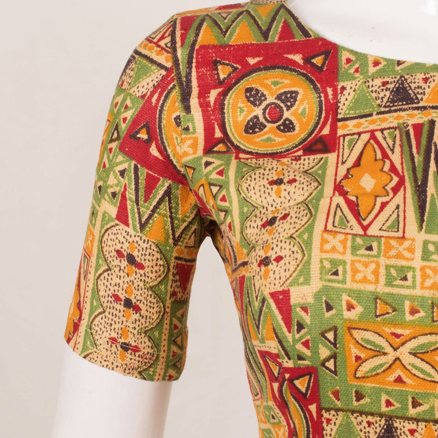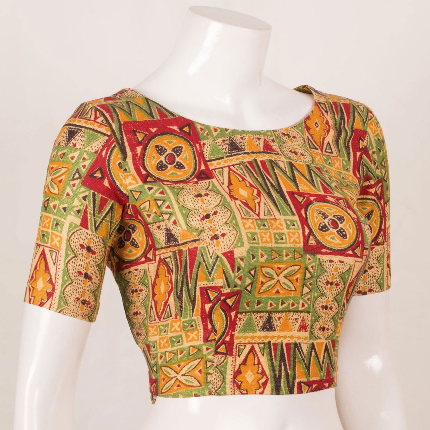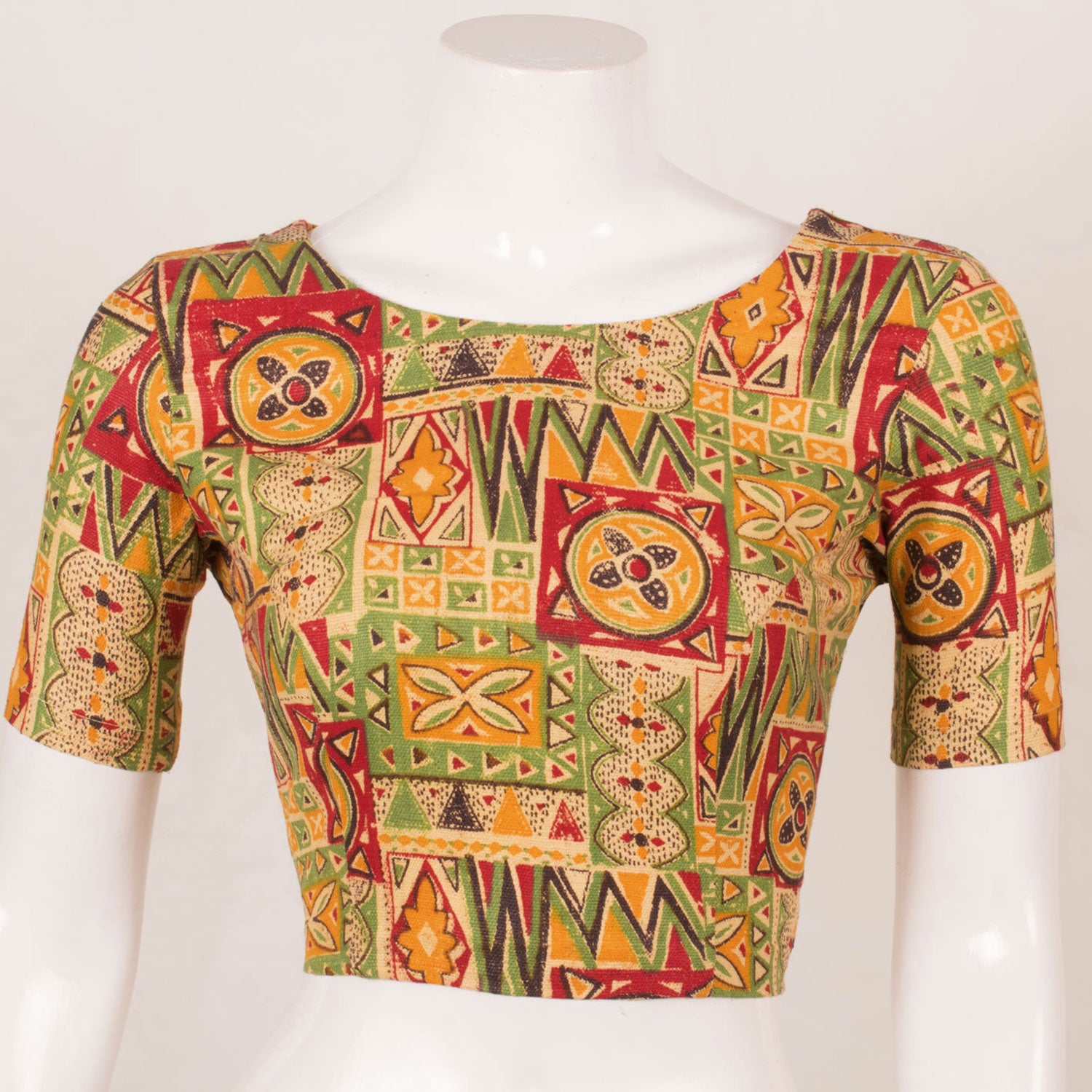 Green & Yellow Fancy Printed Cotton Blouse 10053555