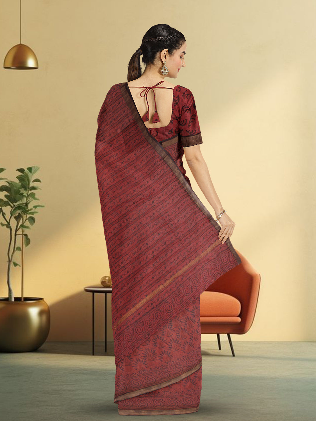 Fire Brick Red Vanaspathi Print Kota Cotton Saree 10074194