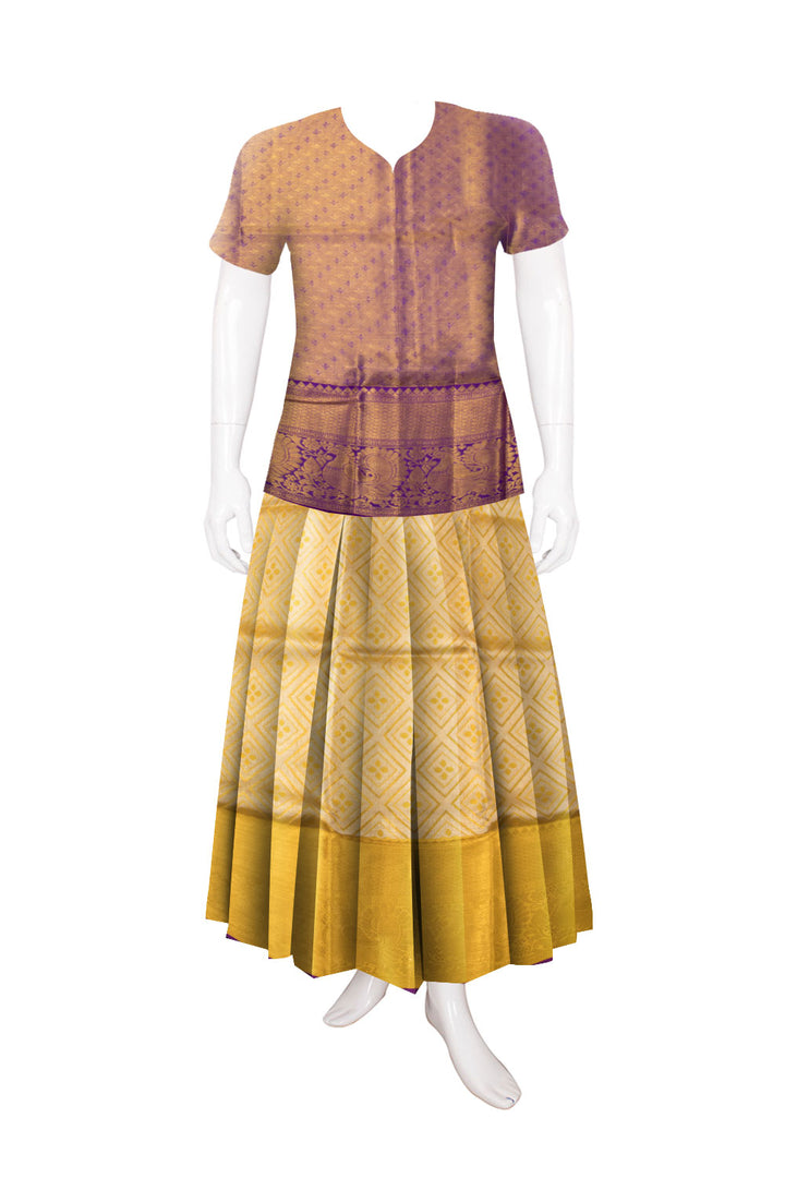 Golden Shade Kanjivaram Pattu Pavadai Material (2 to 4 years) 10068010