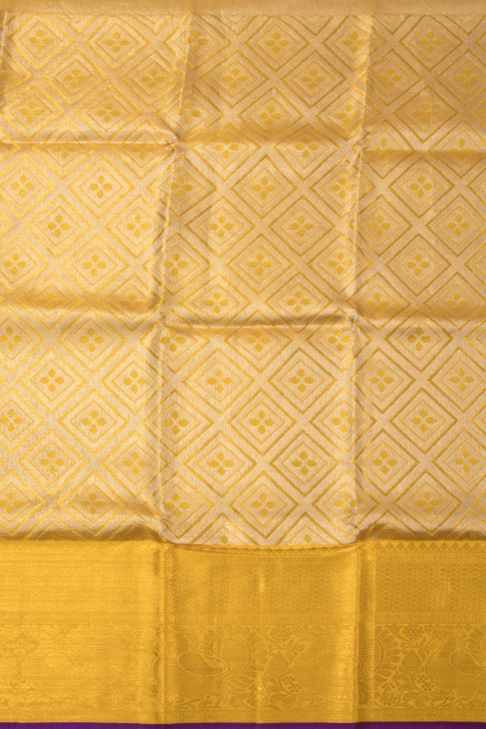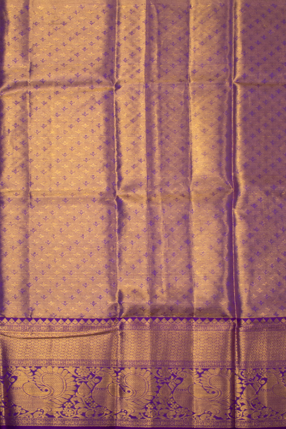 Golden Shade Kanjivaram Pattu Pavadai Material It's time to make a splurge! Let your little one stay comfortable all day with our Golden Shade Kanjivaram Pattu Pavadai Material. This elegant fabric is perfect for any occasion, especially with its vibrant shade of peach.