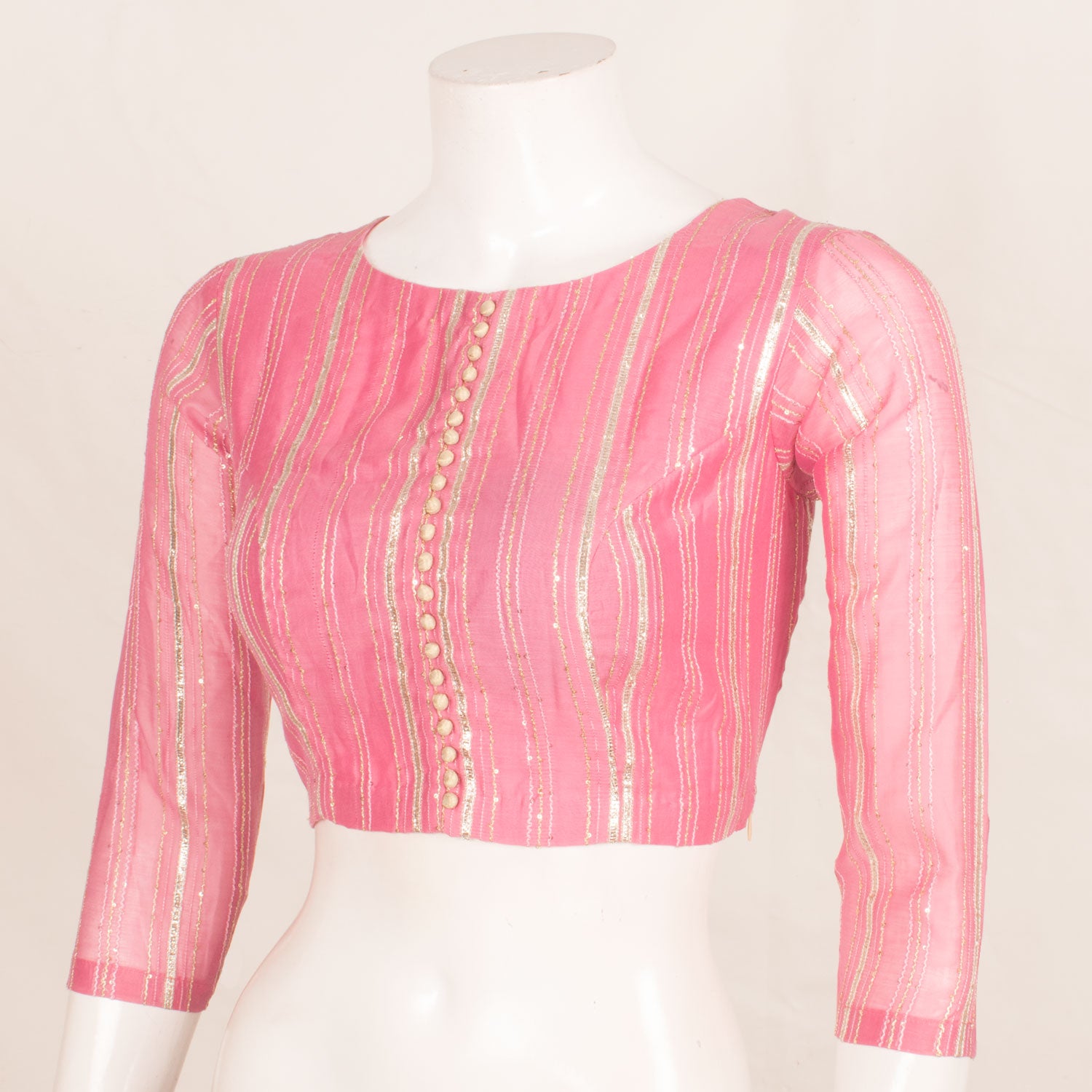 Pink Gotapatti Embroidered Chanderi Blouse 10059332