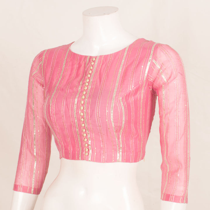 Gotapatti Embroidered Chanderi Blouse with Boondi Button, Sequin Work Zari Stripes and Side Zip 10059332