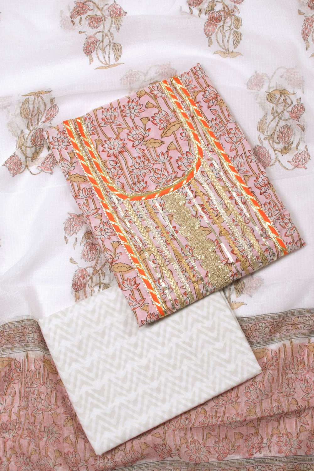 Gotapatti Embroidered Cotton 3-Piece Salwar Suit Material with Kota Cotton Dupatta